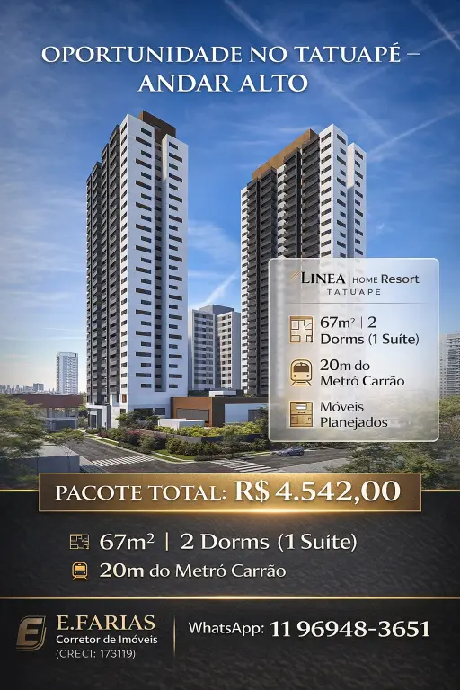 Apartamento no Linea Home Resort Tatuapé - Andar Alto