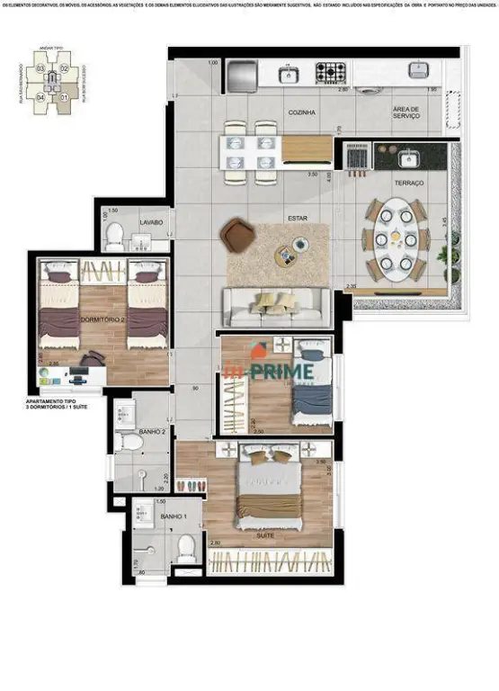 Este belo apartamento oferece uma planta bem distribuída, com 2 dormitórios, sendo 2 suítes, sala ampla, cozinha planejada, varanda espaçosa com vista livre, lavabo, área de serviço e 2 vagas de garagem. Os ambientes são bem iluminados, com ótima ventilação natural e acabamentos de excelente padrão, garantindo praticidade e elegância em todos os detalhes.