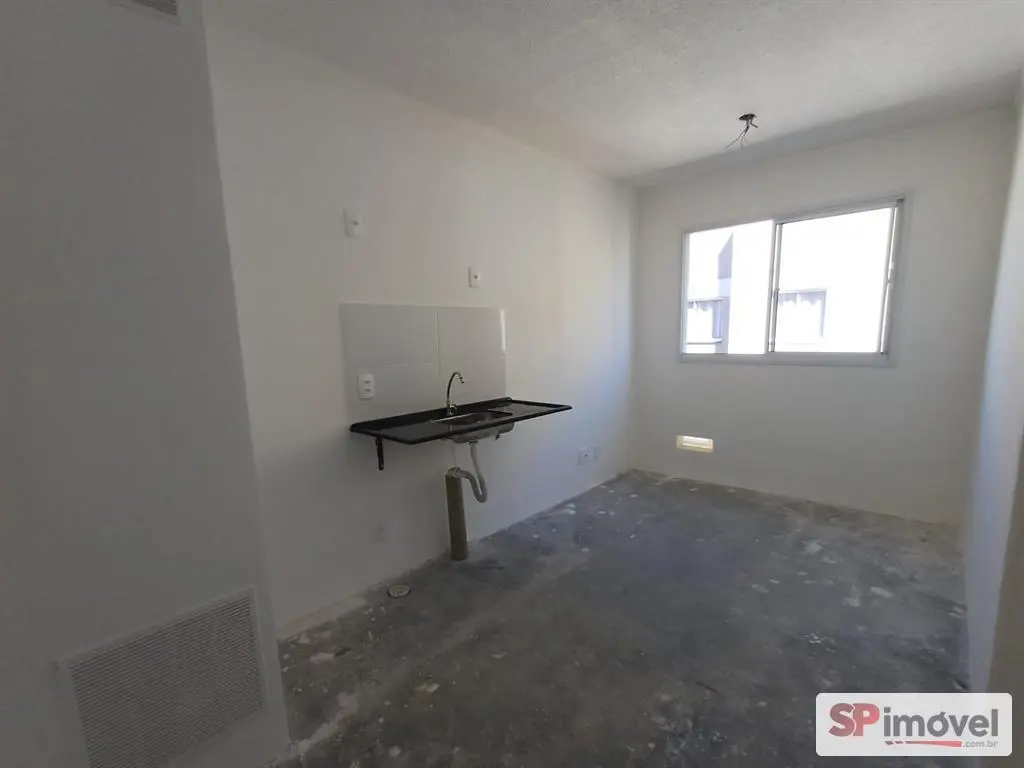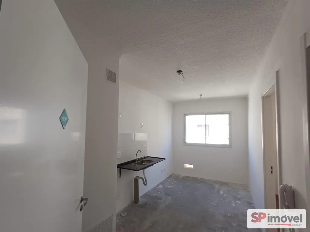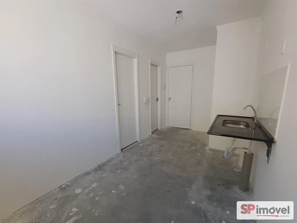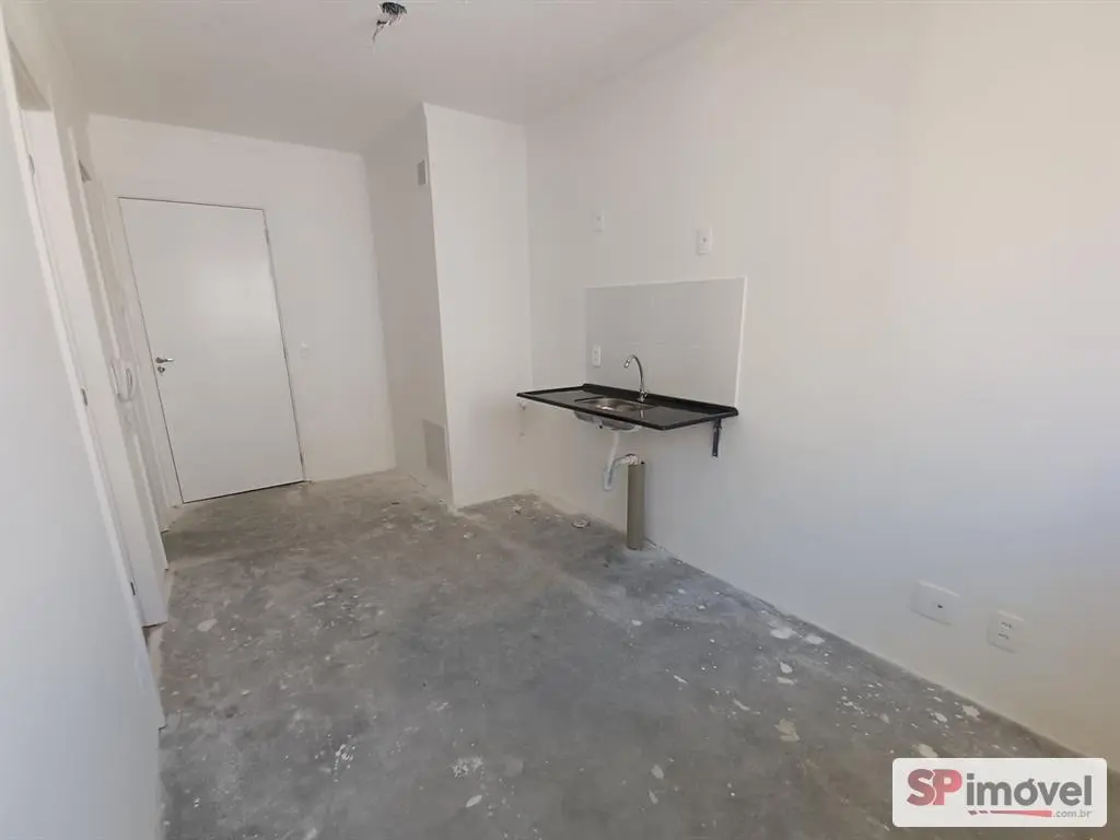 Apartamento novo, no estado que a construtora entregou, como área privativa de 24,56m², sendo 1 quarto, banheiro, sala e cozinha.