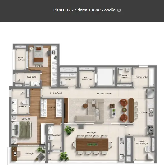 Monã Mooca - Planta de 136?m² | 2 ou 3 Suítes | Alto Padrão e VersatilidadeDescubra um novo estilo de viver com a planta inteligente de 136?m² no Monã Mooca. Com opção de 2 ou 3 suítes e living ampliado, este projeto une elegância, conforto e sofisticação em cada detalhe. Valor do m² planta de 136m² R$ 13.844 Destaques da unidade:Planta versátil: ideal para quem busca funcionalidade sem abrir mão do espaçoVaranda gourmet integrada ao livingSuíte master com excelente iluminação naturalCozinha com ótima circulação e integração aos ambientes Viva com exclusividade em um condomínio com mais de 7.000?m², lazer completo e design contemporâneo no coração da Mooca.FALE COM A CORRETORA ANA