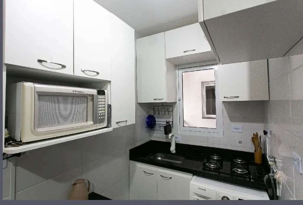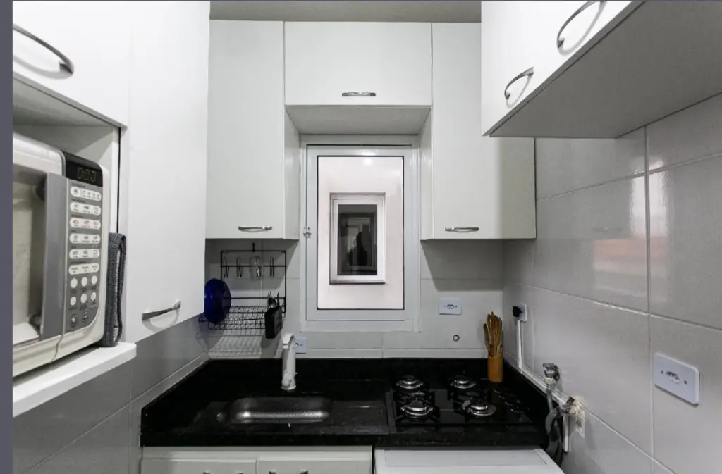 Apartamento de 1 dormitório com móveis planejados (cozinha e banheiro) + cooktop e box já instalados.