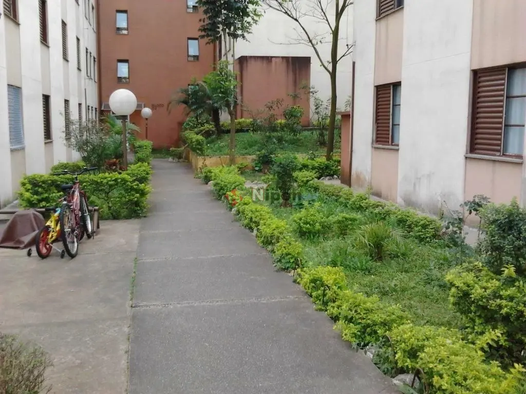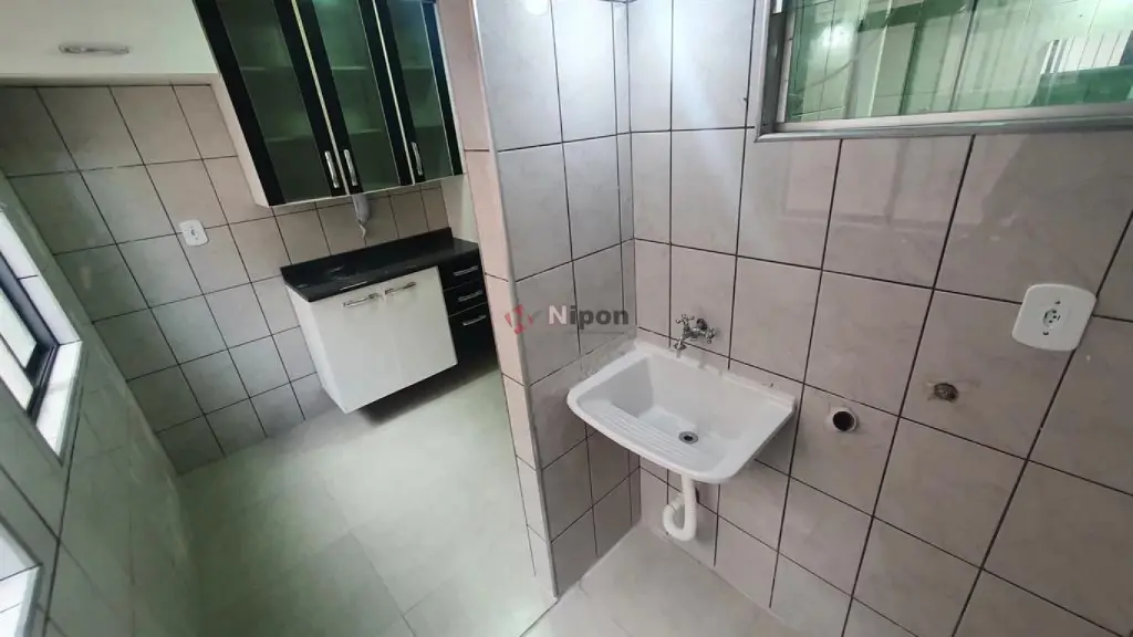 Apartamento vago com 45m2 de área útil, com 2 dormitórios, sala, cozinha, 1 banheiro, área de serviço e garagem para 1 carro.