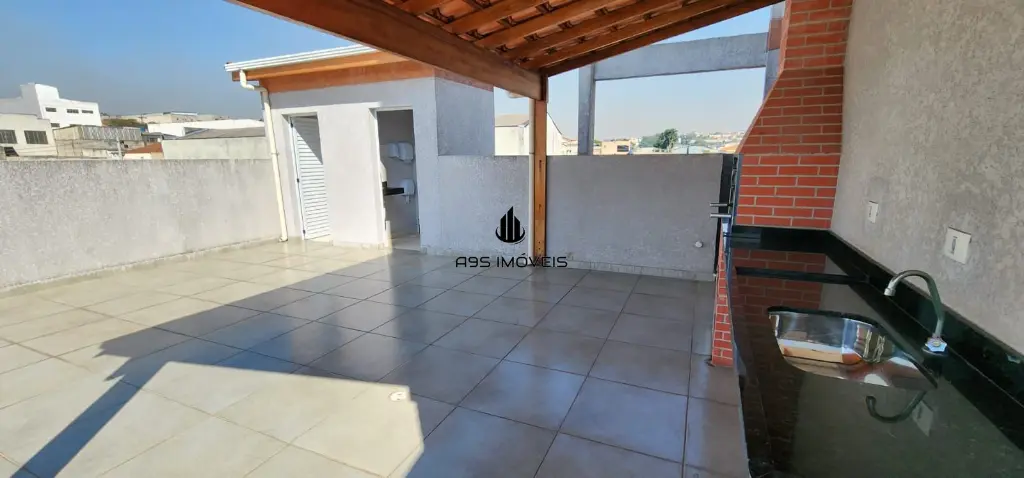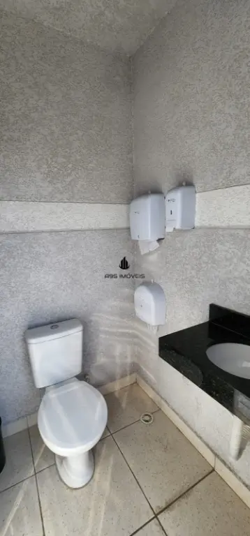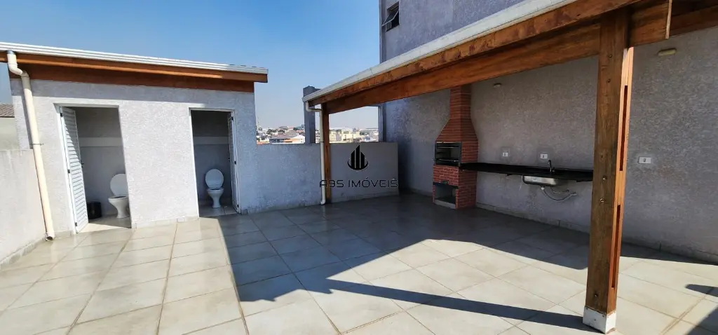 ??Churrasqueira com espaço aberto e dois banheiros.