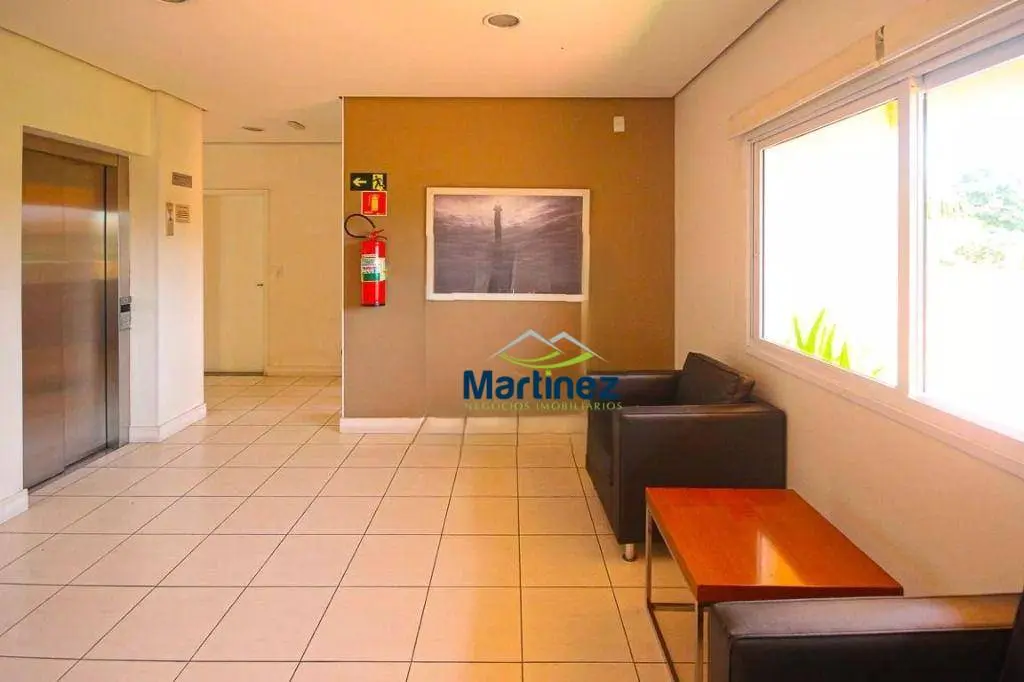 01 dormitório com guarda roupas, sala com armário e mesa, cozinha com gabinete e armários, área de serviço com armários, wc social com Box de vidro, 01 vaga de garagem coberta com manobrista.
