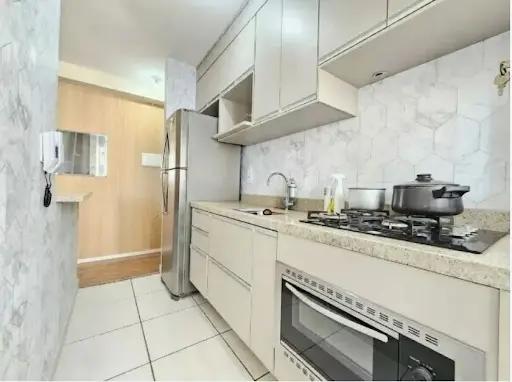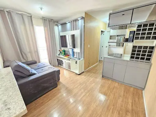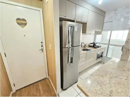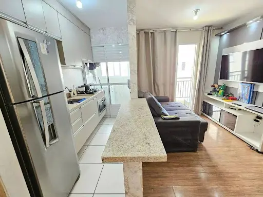 -2 Dormitórios com armários, Sala 2 Ambientes, Sacada, Banheiro, Cozinha com armários planejados, área de Serviço com divisória de vidro, 1 Vaga de garagem, tudo em muito bom estado de conservação. O condomínio conta