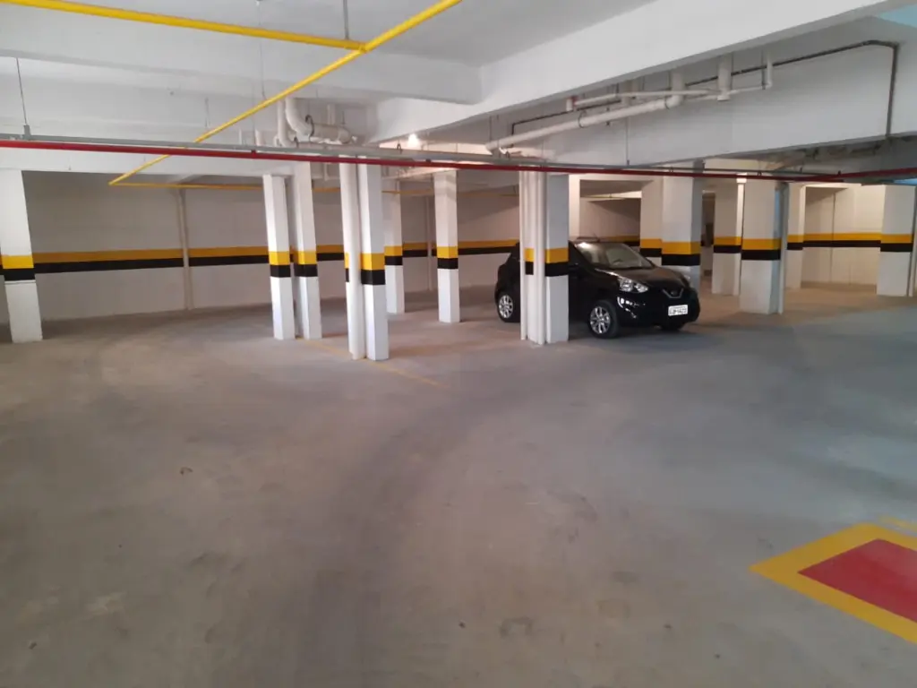 48m², com, dois dormitórios, sala, cozinha, área de serviço, e vaga para um carro coberta e determinada.