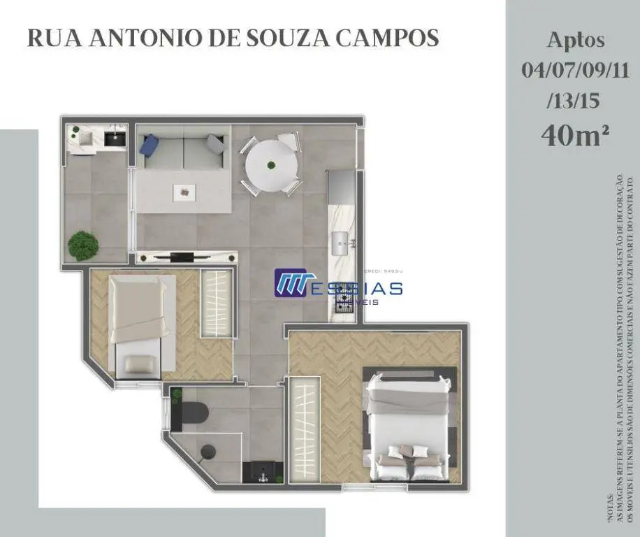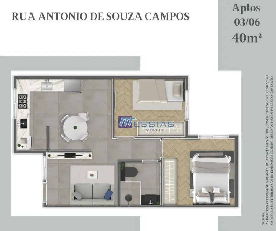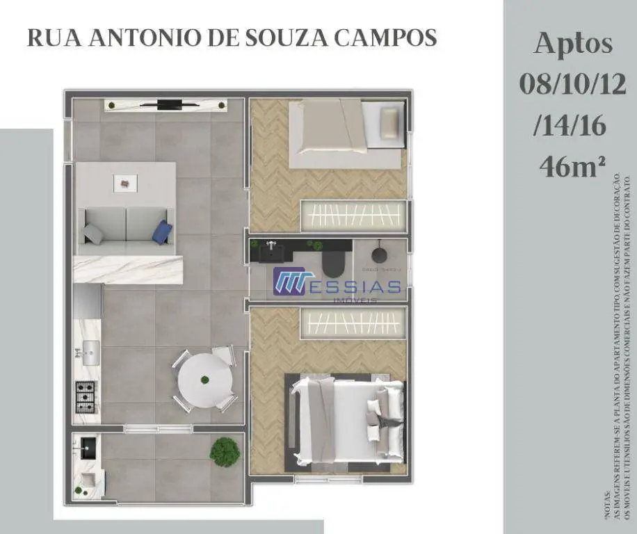 APARTAMENTO 41 **** excepcional projeto com ampla sala para 2 ambientes, sacada; cozinha com pia e bancada em granito; área de serviço; banheiro social, dormitório solteiro e dormitório casala