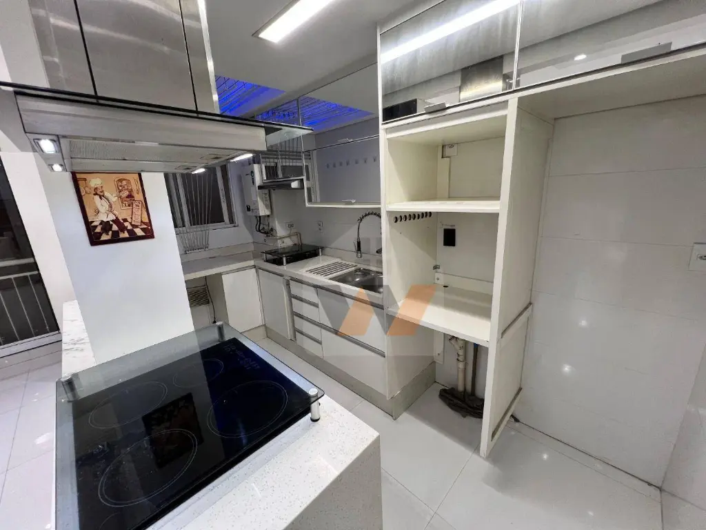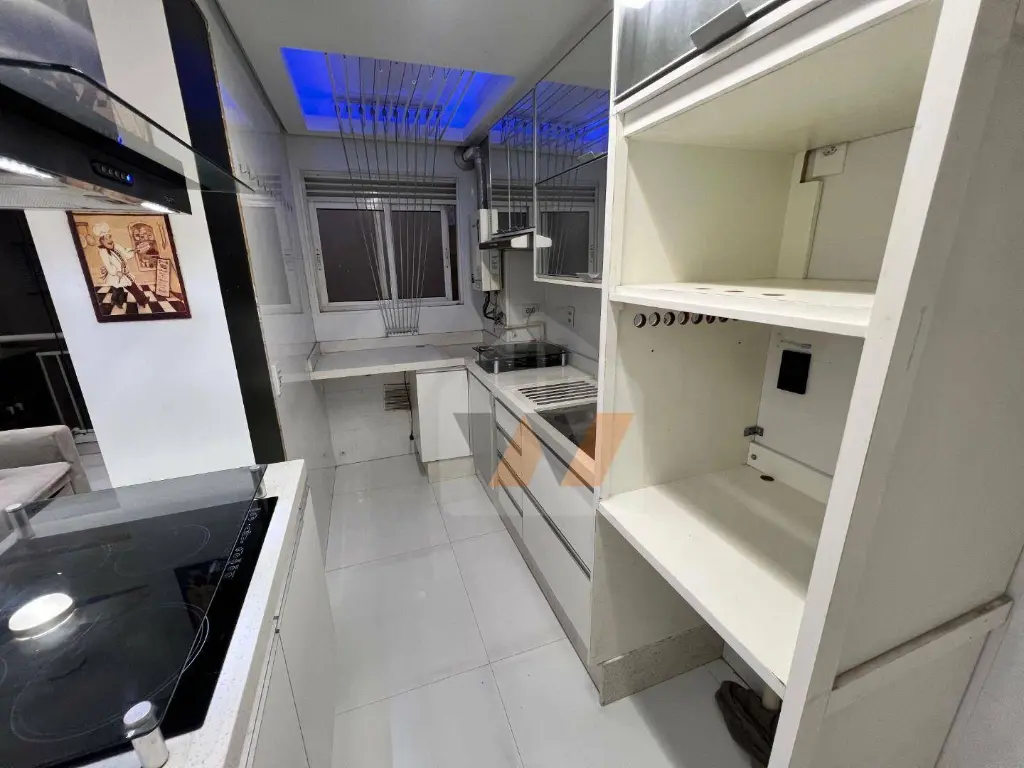 COZINHA COM ARMÁRIOS PLANEJADOS, PISO PORCELANATO.