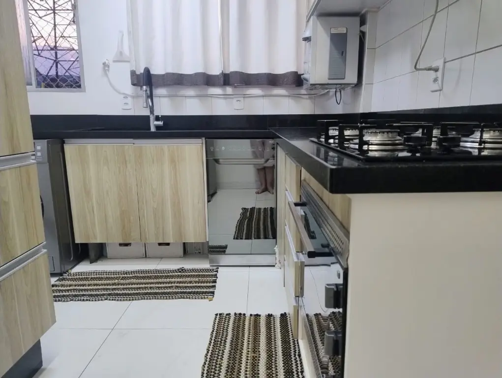 O que fica na cozinha: Cooktop, forno e coifa.