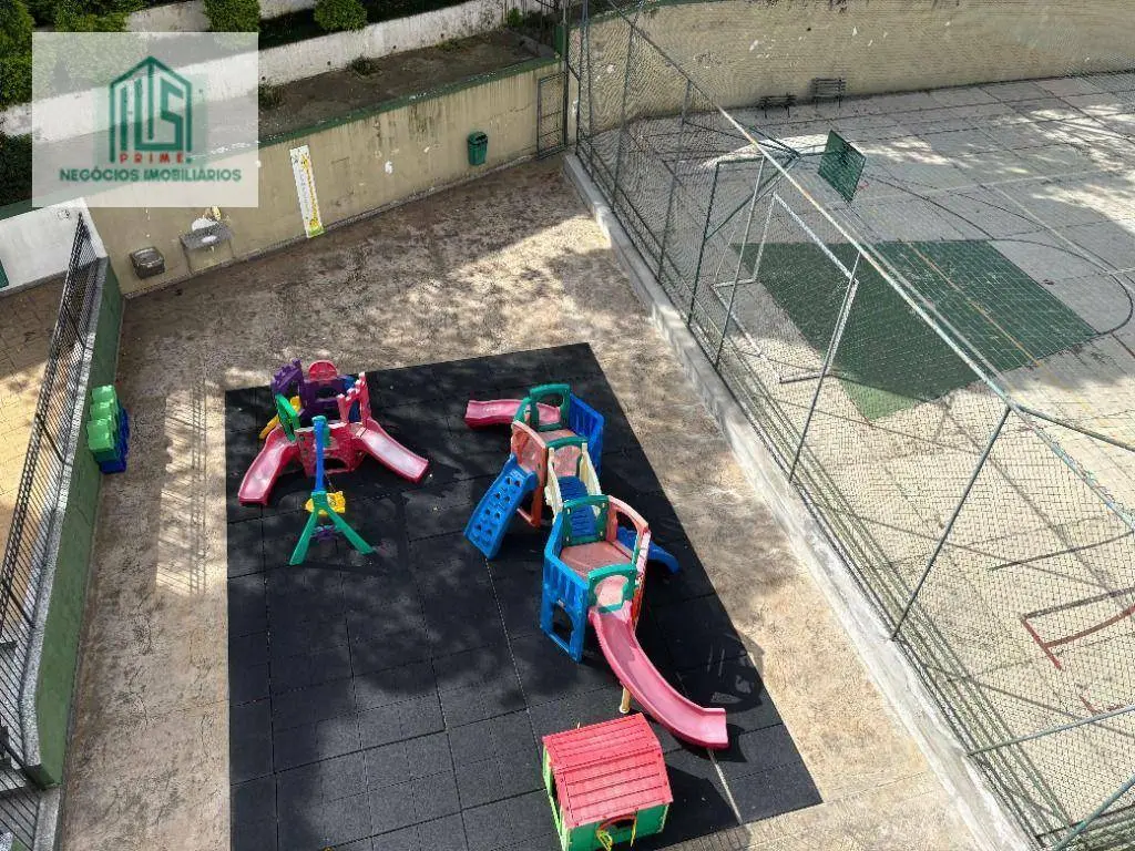 Sacada com vista incrível para piscina, quadra e playground