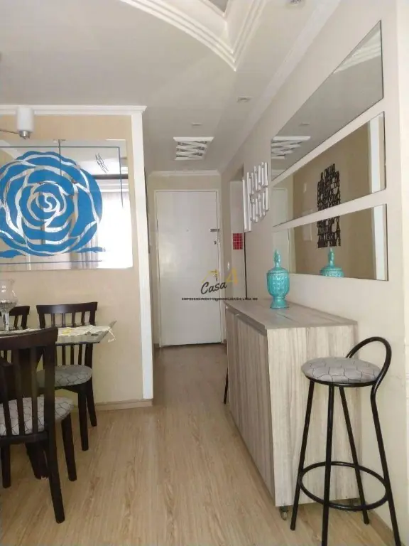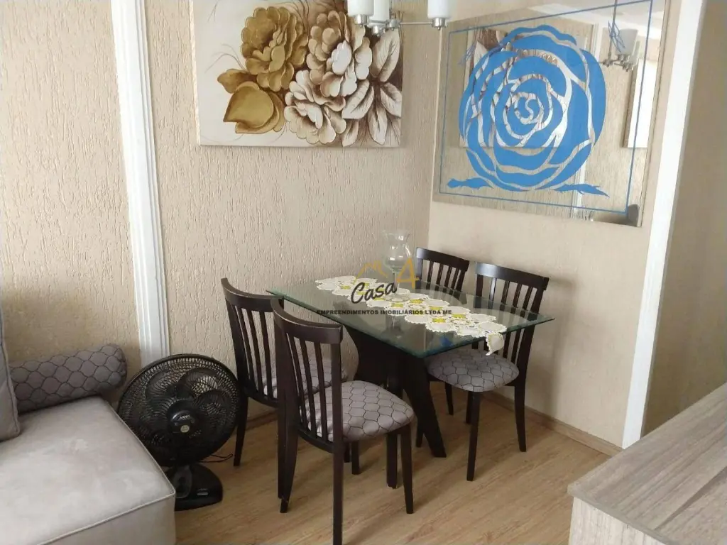 O imóvel dispõe de 2 dormitórios, 1 banheiro, sala, cozinha, lavanderia. Sendo o quarto do casal com belo planejado, cozinha com planejado moderno, sala arejada, espaçosa para dois ambientes e o banheiro com móveis modulares, otimizando o espaço. O apartamento está em excelente condições, paredes com acabamento impecável e pisos em laminado claro, tornando os ambientes mais confortáveis.