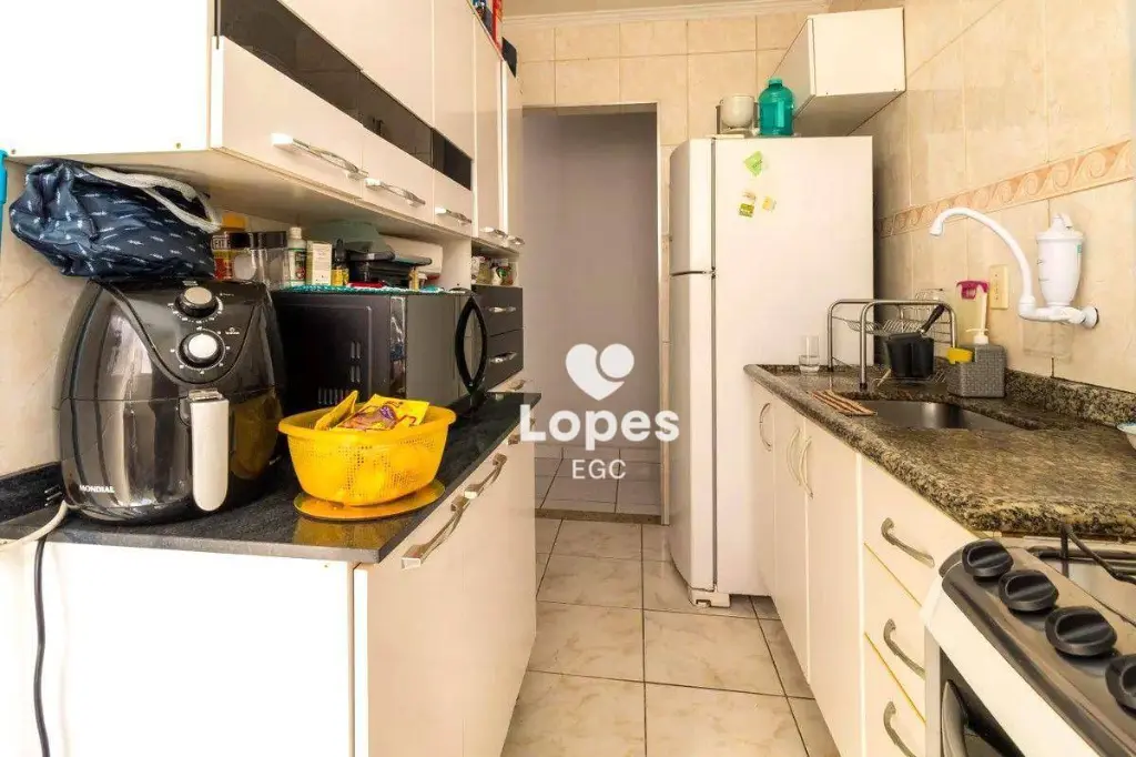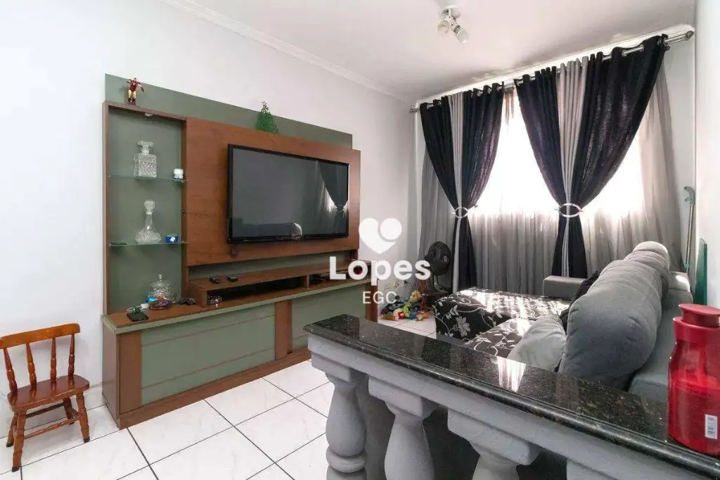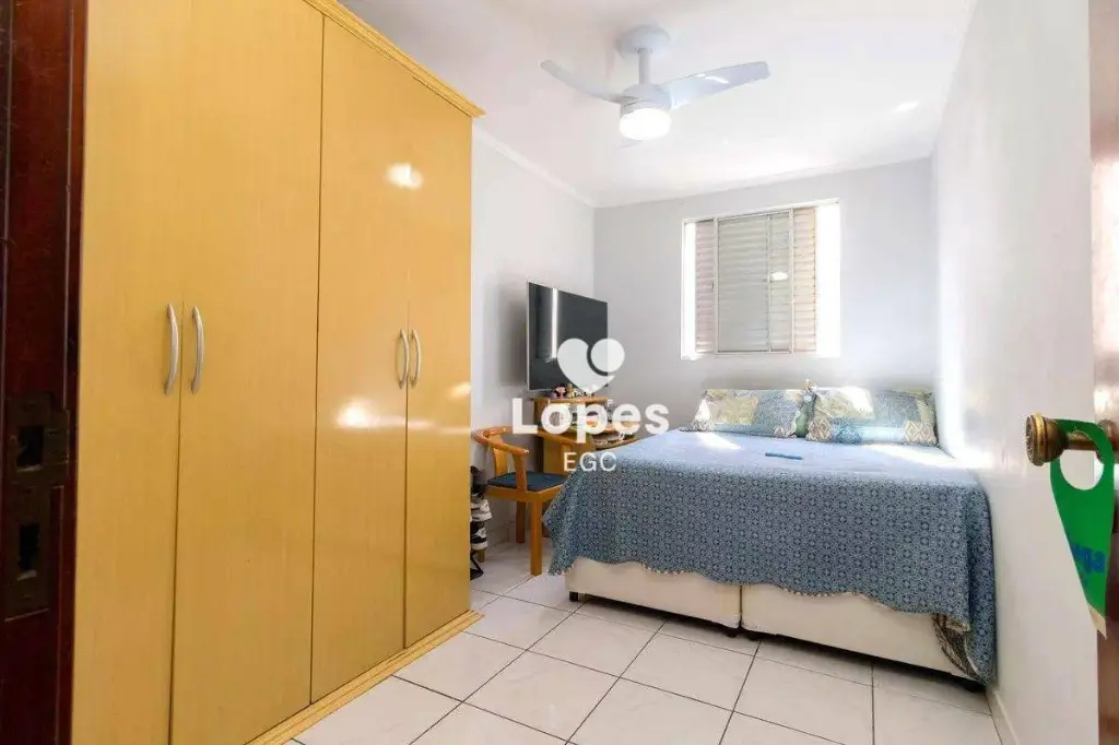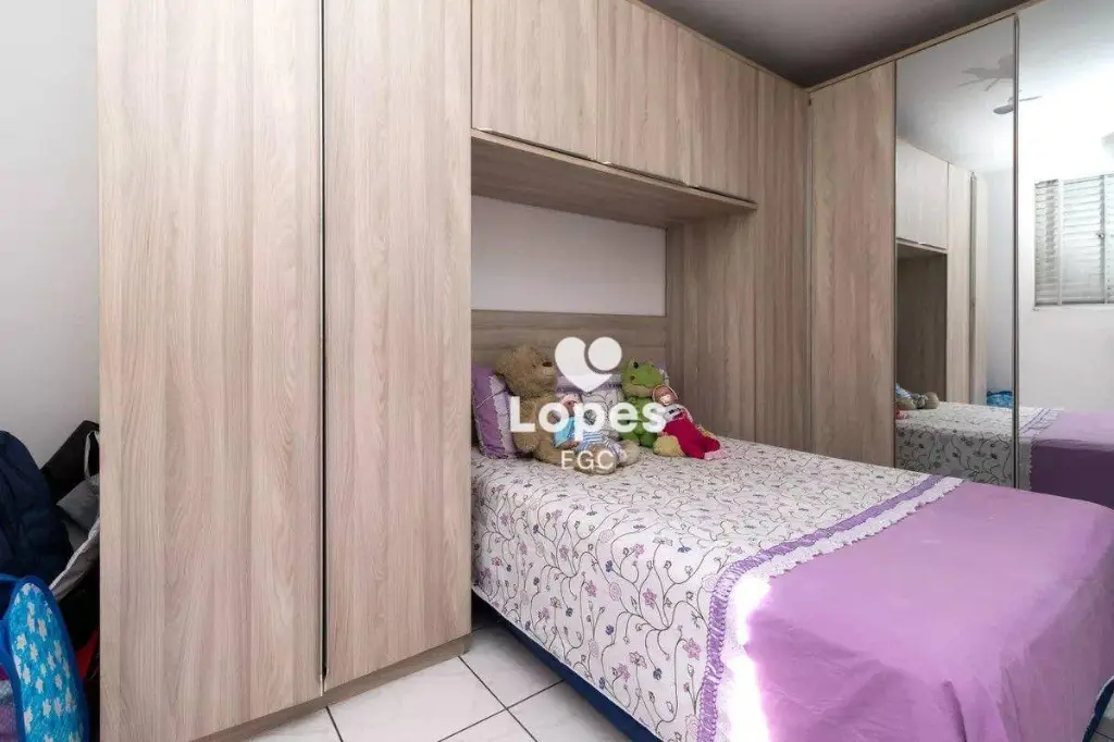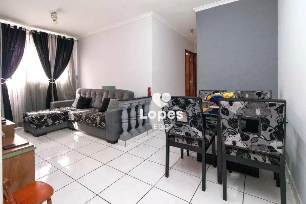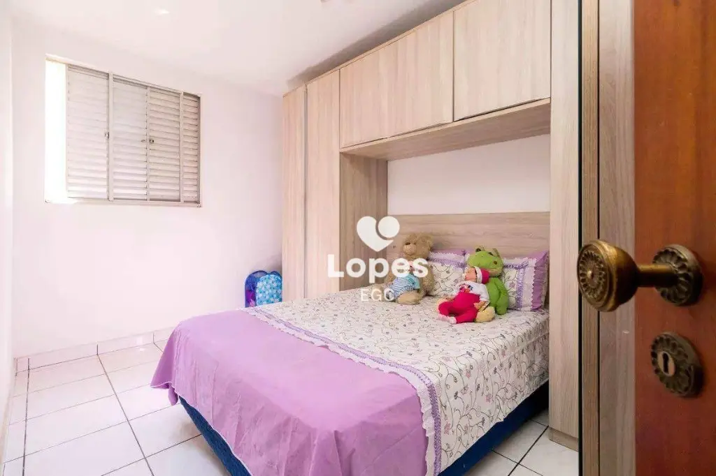 O imóvel oferece três dormitórios bem distribuídos, sala ampla para dois ambientes, cozinha funcional, banheiro social com box de vidro, área de serviço e uma vaga de garagem.
