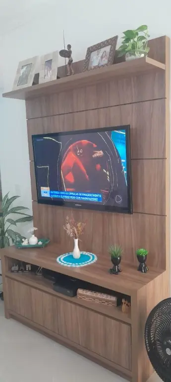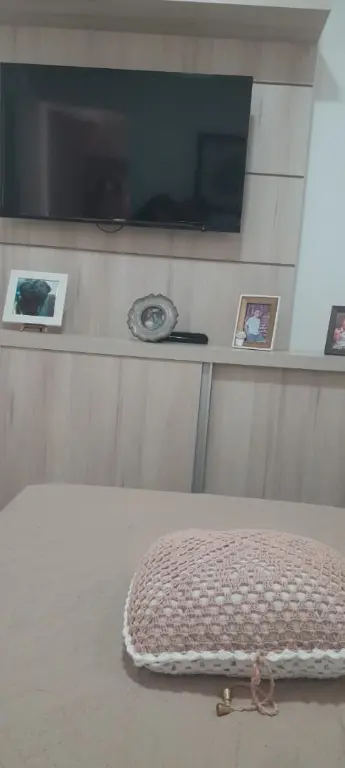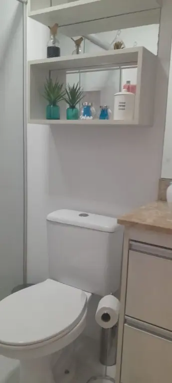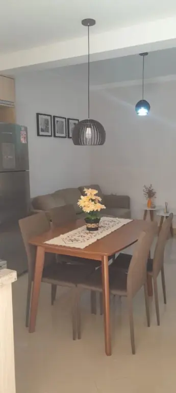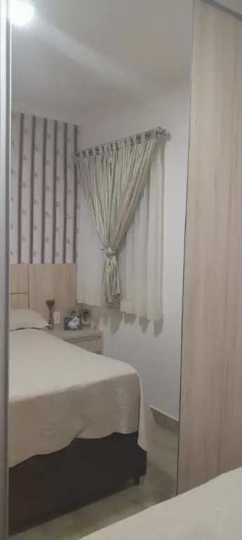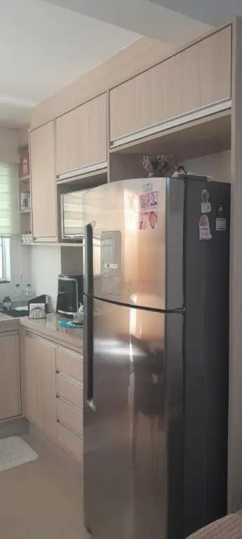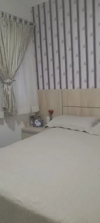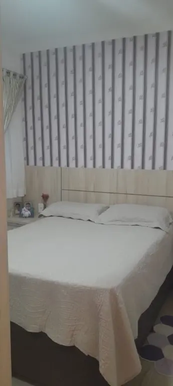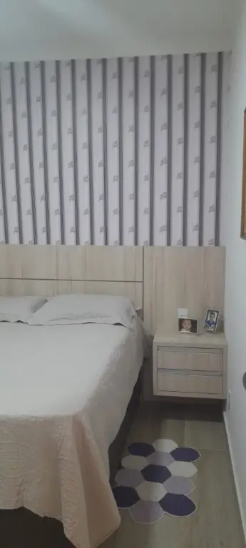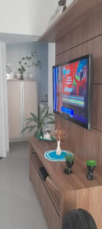 Apartamento moderno de 47 m², com 2 dormitórios, cozinha planejada, banheiro social, painel de TV e móveis planejados. O condomínio oferece elevador, portão automático, monitoramento 24h e gás individual.