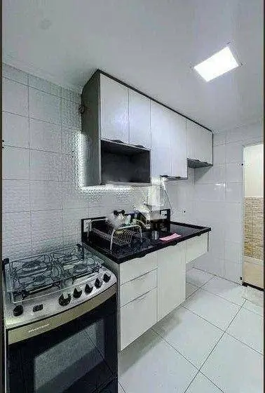 Apartamento de 54m², com 2 dormitórios, sala com ótima iluminação e ampla para dois ambientes, cozinha funcional, 1 banheiro social, área de serviço separada da cozinha por uma porta, varanda, móveis planejados, áreas molhadas com revestimentos e 1 vaga de garagem descoberta.
