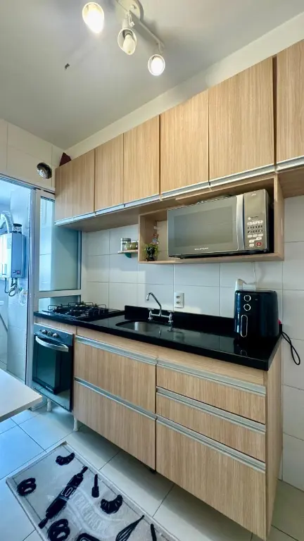 Apartamento dois dormitórios, sala, cozinha, vaga de garagem coberta e definida, varanda gourmet, ampla e envidraçada.