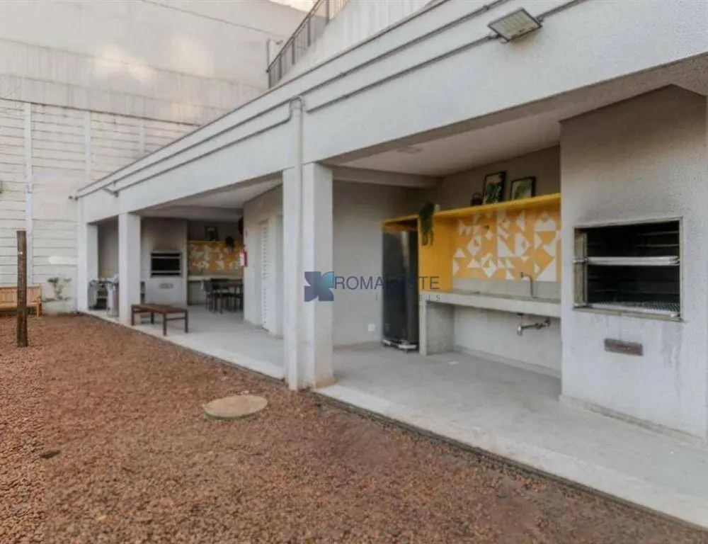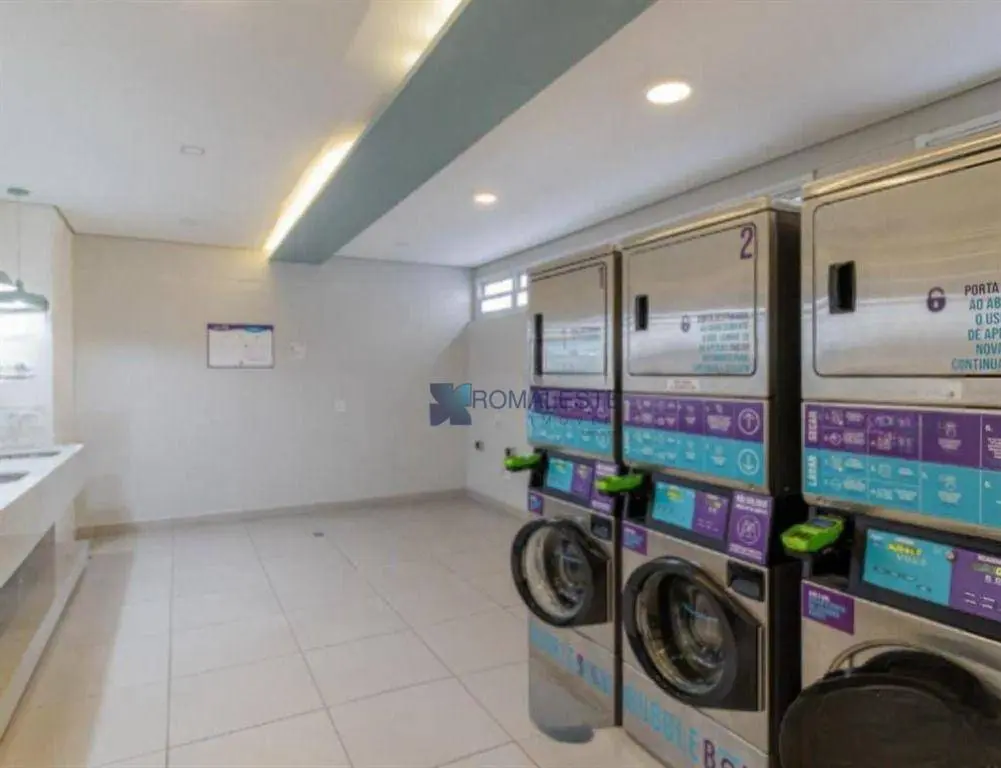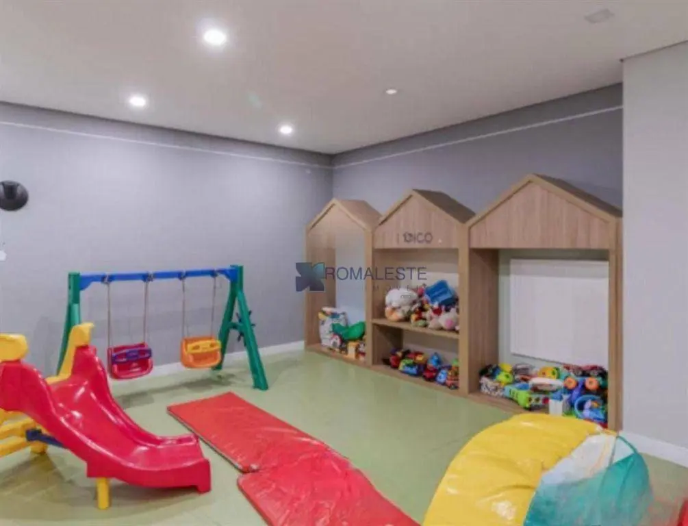 Condomínio com área de lazer completa: playground, área de churrasqueira, salão de festas, lavanderia, piscina e academia.