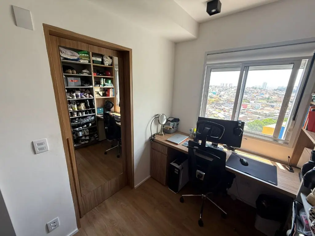 Apartamento Excelente Localização na Vila Ema, próximo a estação São Lucas, com 60 metros de área útil, com 02 dormitórios 01 suíte, armários planejados por arquiteto, closet e escritório(2º quarto). Cozinha completa, dois banheiros, lavanderia e sala ampliada com sacada gourmet com pia, churrasqueira e mini geladeira. 02 vagas, e uma vaga para moto.