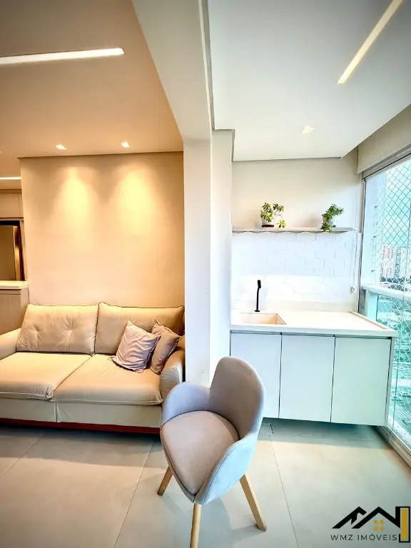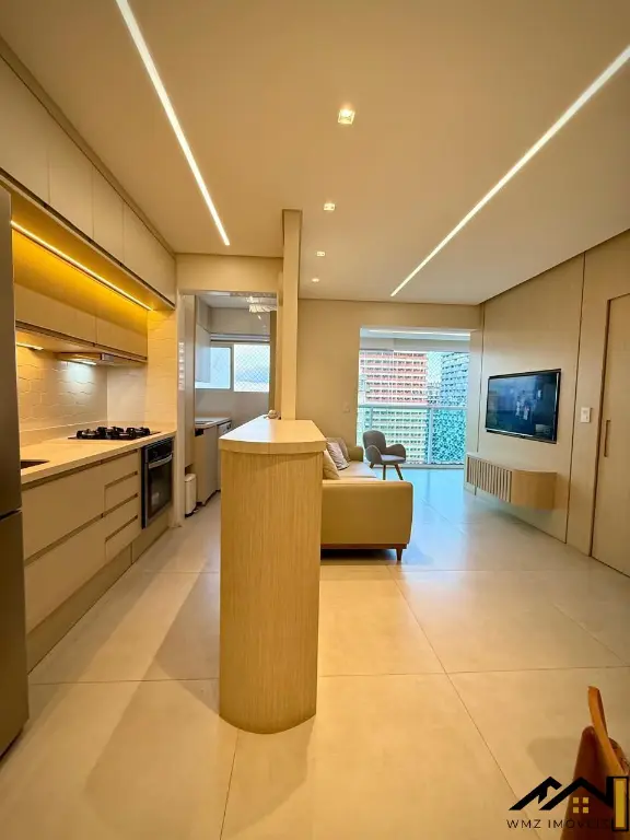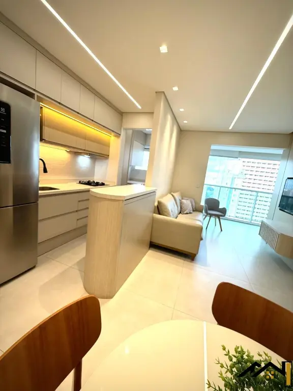 Com 45m² de área útil, o imóvel conta com 1 dormitório, 1 banheiro, 1 vaga de garagem, varanda envidraçada e cozinha americana planejada, oferecendo praticidade e conforto em cada detalhe.