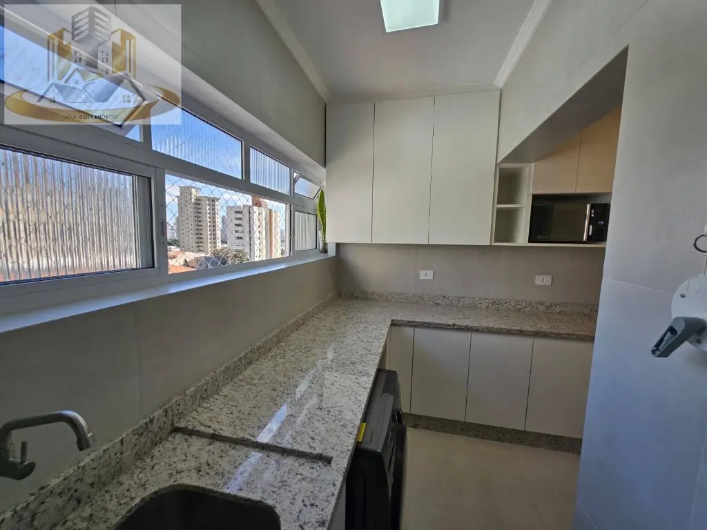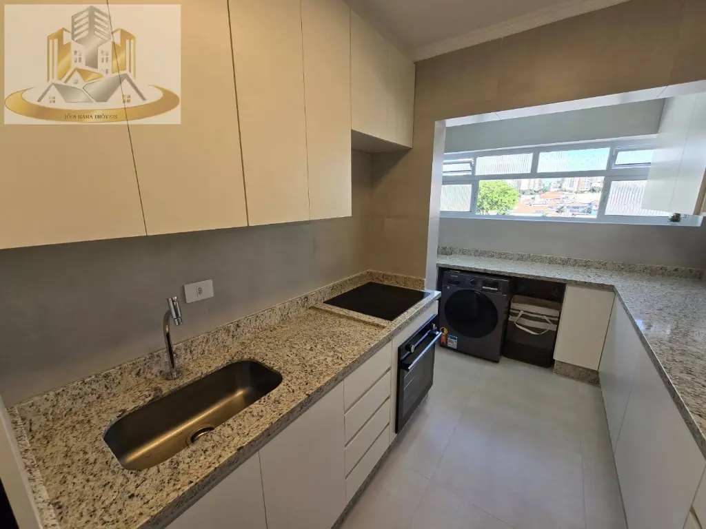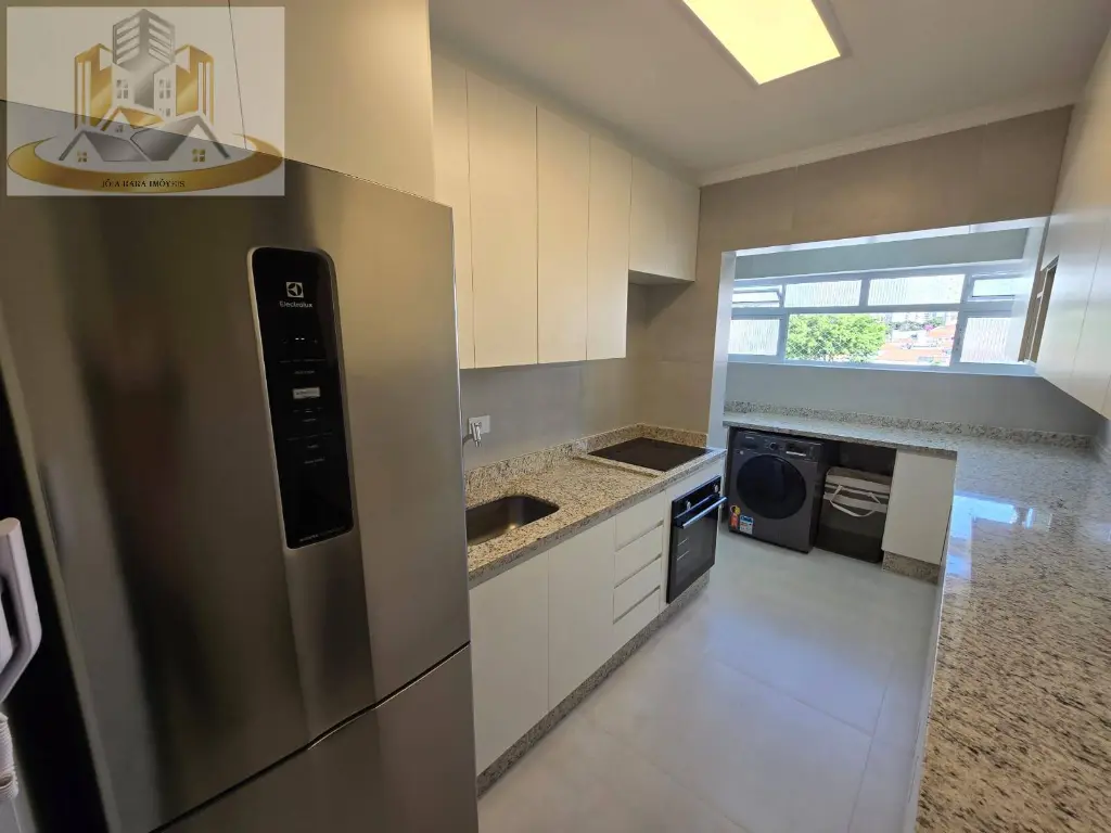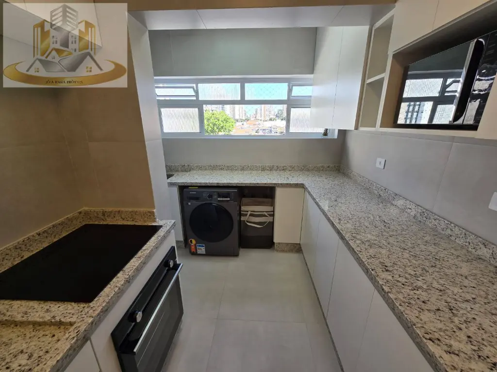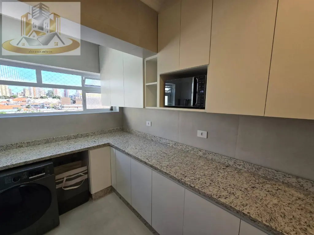 - Cozinha e Área de Serviço: Cozinha equipada com armários planejados e uma área de serviço funcional, ambos com acabamento em porcelanato.