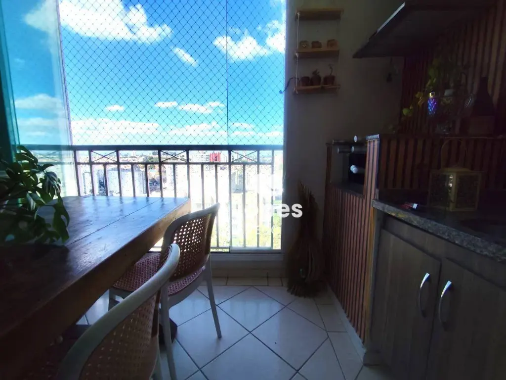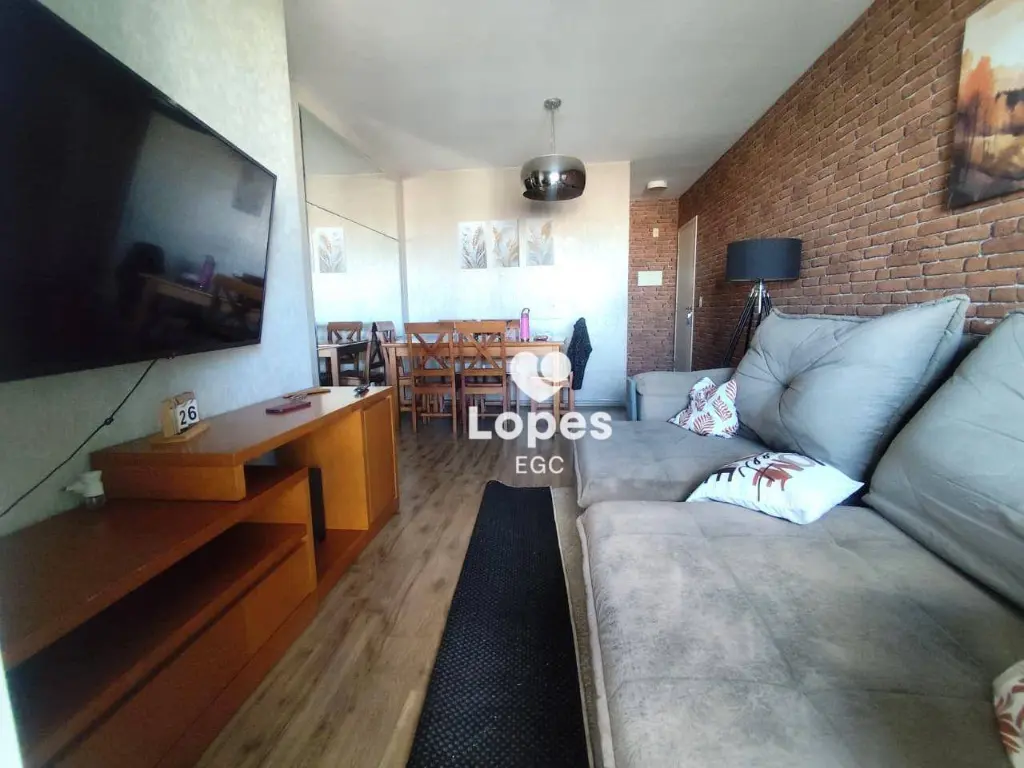 O imóvel conta com 3 dormitórios, sendo uma suíte, sala ampla para dois ambientes que se integra à sacada com churrasqueira, ideal para momentos de convivência, além de cozinha com armários planejados, área de serviço funcional, banheiro social com box de vidro e duas vagas de garagem.