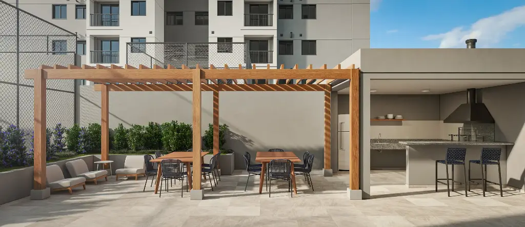 OUTRO DIFERENCIAL DO EMPREENDIMENTO É O LAZER ELEVADO NO 3o PAVIMENTO, UMA PROPOSTA QUE AMPLIA A EXPERIÊNCIA DE MORADIA, VALORIZA A VISTA E OFERECE MAIS COMFORTO PARA OS MOMENTOS DE CONVIVENCIA E DESCANSO