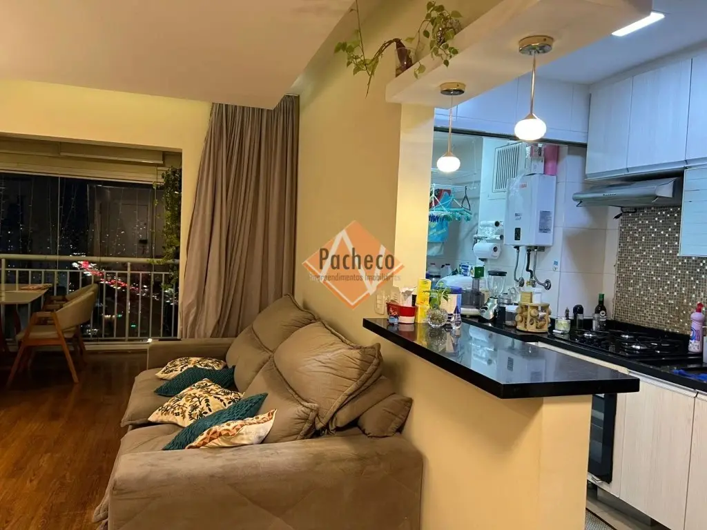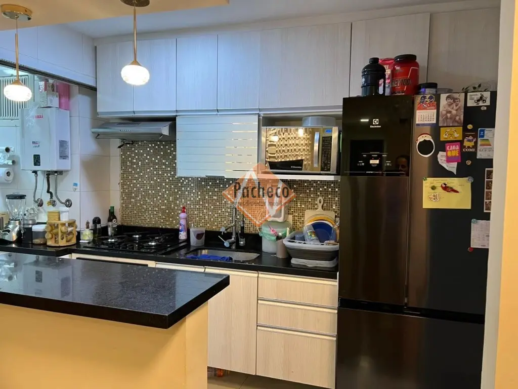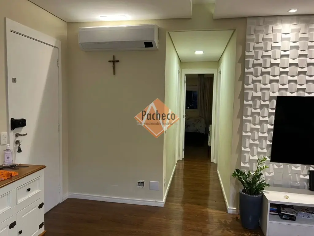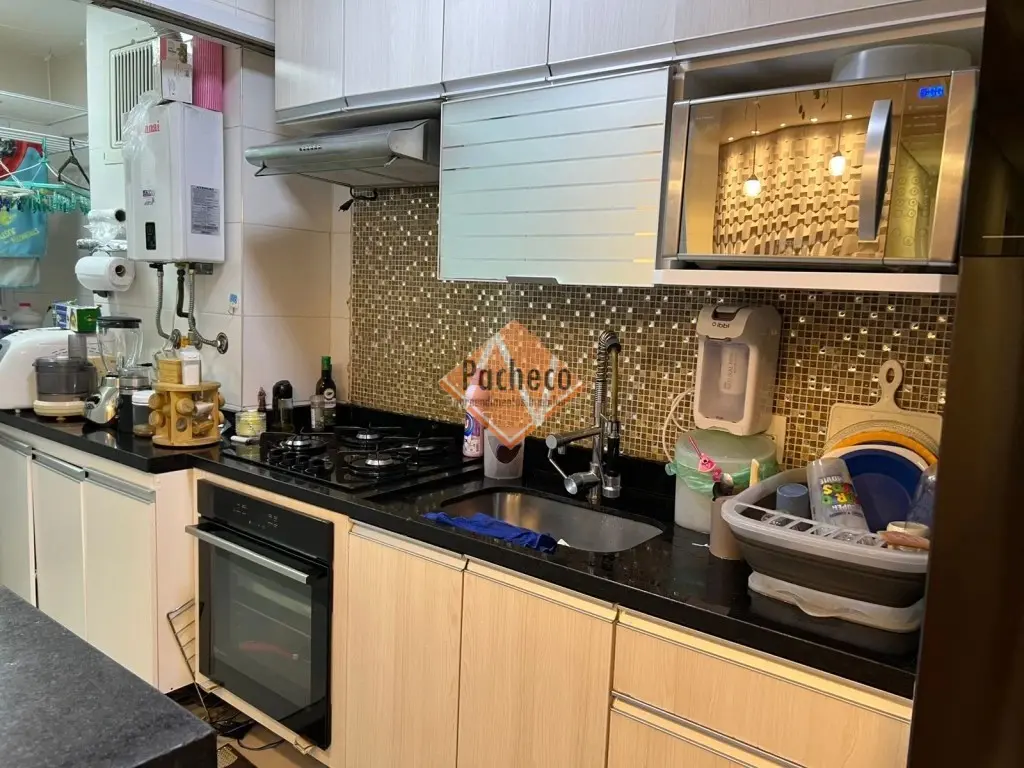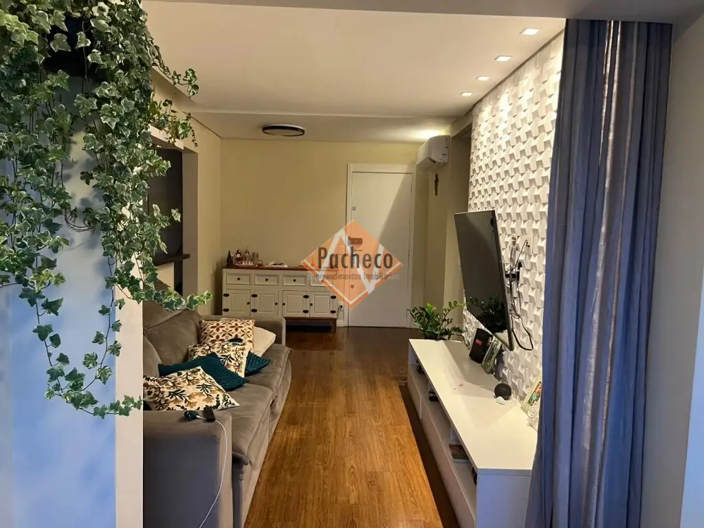 Apartamento com 2 dormitórios com armários planejados, sendo 1 suíte com closet, sala ampla com sacada envidraçada, cozinha com armários planejados, banheiro social, área de serviço e 2 vagas de garagem.