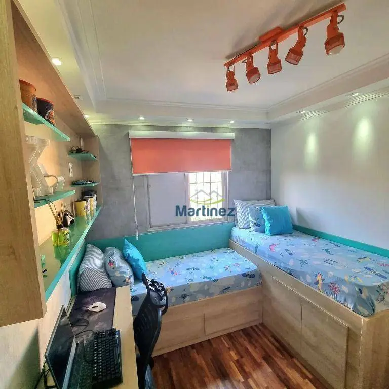 Quartos Planejados: No piso inferior, dois quartos com piso de madeira oferecem vistas encantadoras para o Ceret. Um dos quartos possui duas camas sobrepostas, gavetas, espaço para brinquedos, mesa de estudos, armário e painel. O outro conta com um amplo guarda-roupa em L e um pequeno camarim.
