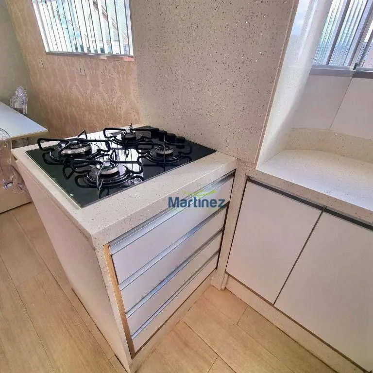 Cozinha Americana Moderna: Projetada com quartzo Stellar branco, a cozinha conta com pia, bancada e uma península com cooktop Brastemp e gaveteiro. Além disso, possui uma torre com forno e micro-ondas Electrolux, integrando funcionalidade e estilo.