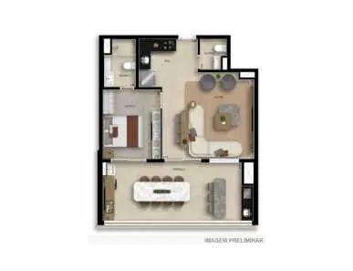 - 74 M² com 2 Dormitórios, sendo 2 Suítes e 1 Vaga;