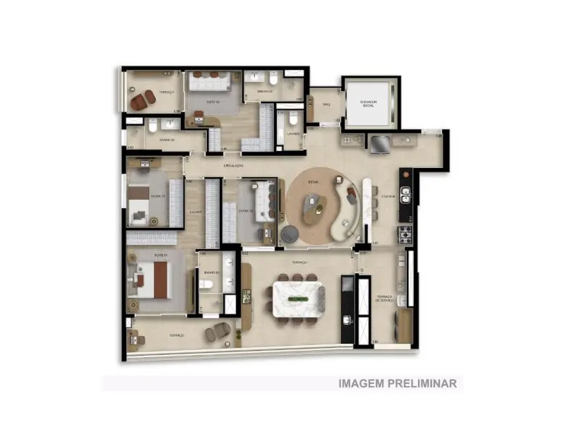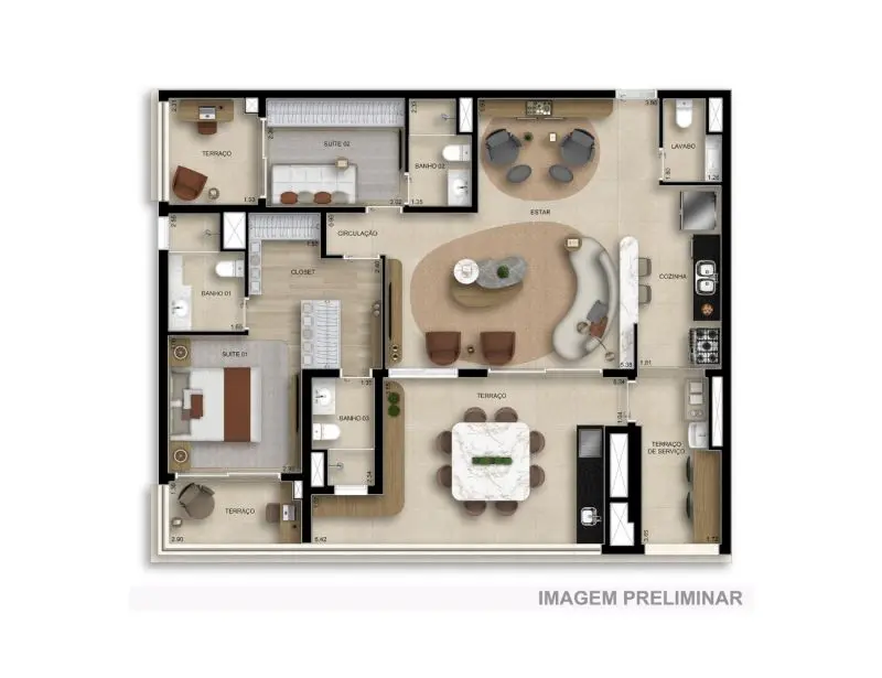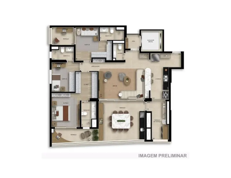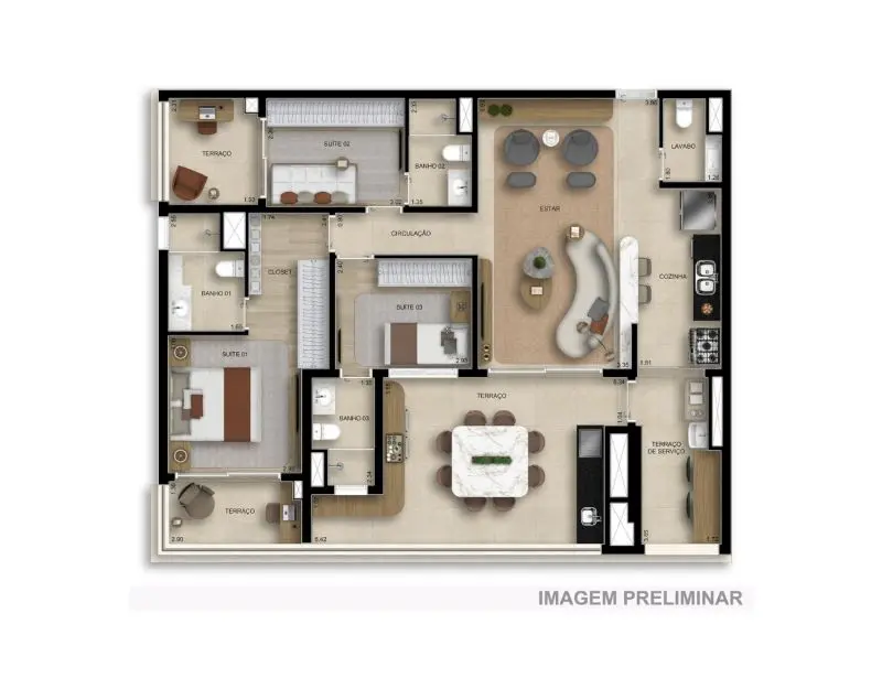 - 125 M² com 3 Dormitórios, sendo 3 Suítes e 2 Vagas;