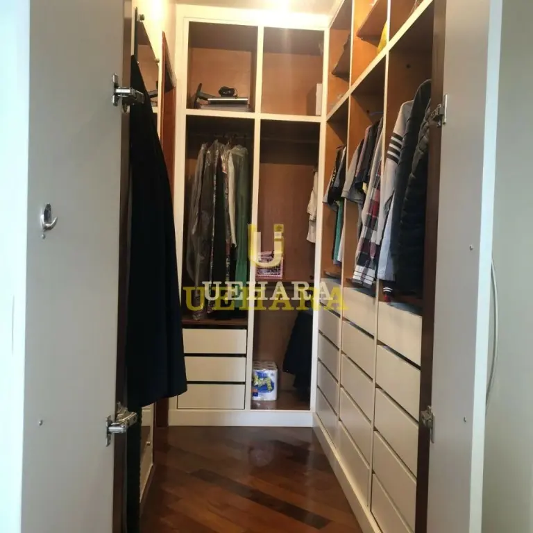 A cozinha é espaçosa e super arejada, repleta de armários, além de possuir uma ampla área de serviço. Você irá se encantar com o andar alto deste apartamento, que oferece uma vista maravilhosa para todos os dormitórios, inclusive a cozinha. O revestimento do piso em tábua de madeira ipê confere um toque de sofisticação ao ambiente.