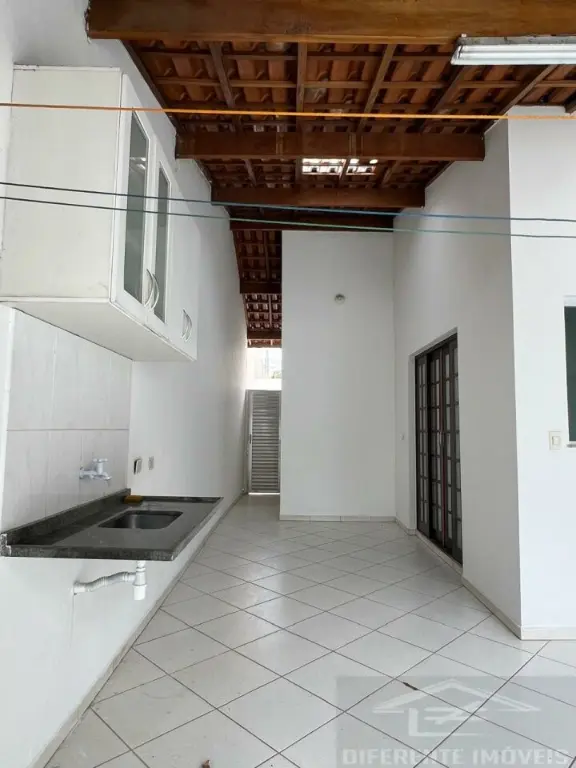 Varanda grande e coberta ao lado da cozinha, com pia e armário