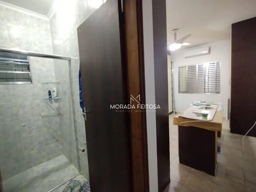 3 dormitórios, sendo 1 com armários e 1 suíte com ar-condicionado, sala ampla para dois ambientes, lavabo com pé direito alto, cozinha ampla com armários, banheiro social, corredor lateral, quintal, edícula grande nos fundos com 1 banheiro, área de churrasqueira, todo telado nos fundos, 4 vagas de garagem cobertas com portão automático, e câmeras de segurança e alarme.