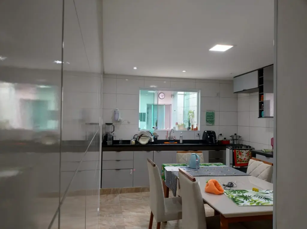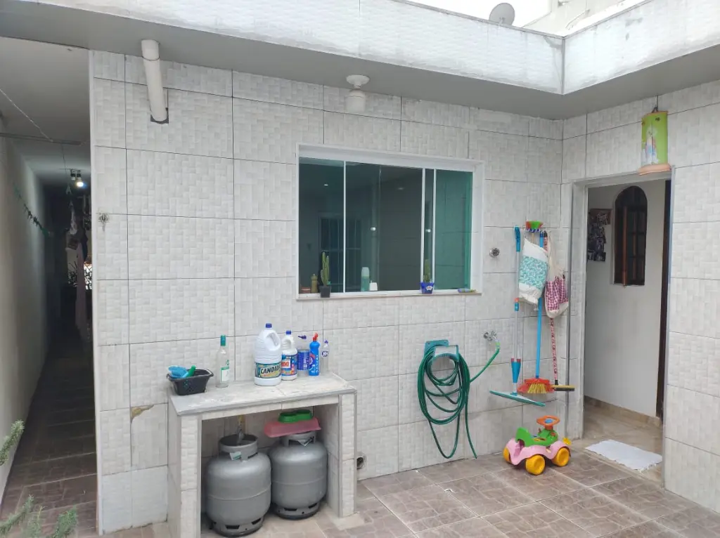imóvel com 3 quartos, sendo um dos quartos uma suíte, 2 banheiros considerando o da suíte, cozinha, sala, quintal nos fundos com cômodo para itens pessoais.