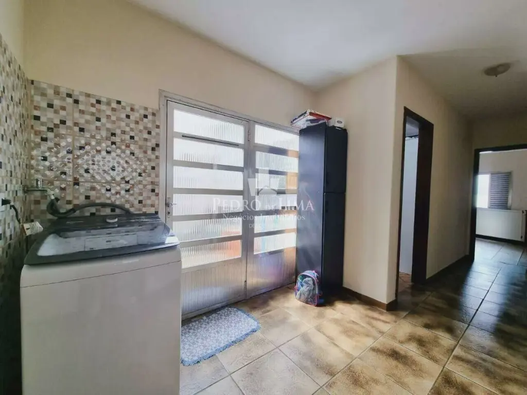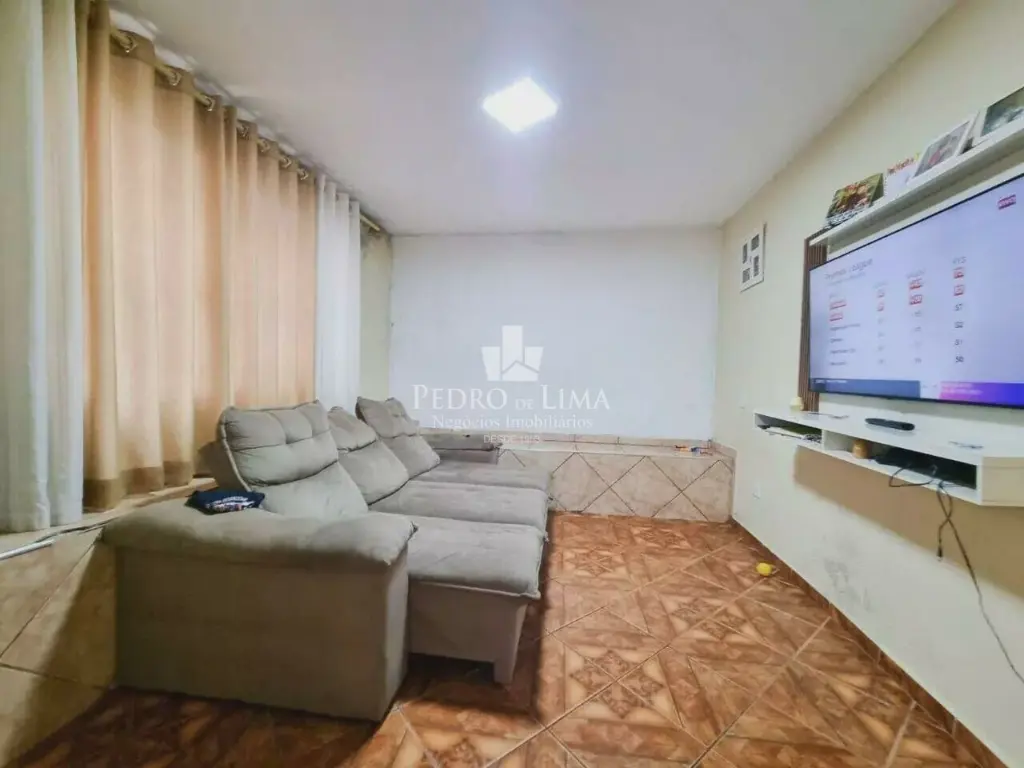 Sala para 2 ambientes, cabendo uma mesa grande de jantar. Janela grande garantindo muita ventilação e claridade ao imóvel, cozinha espaçosa e lavanderia individual, corredor lateral dando acesso a casa do fundo