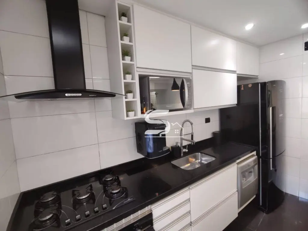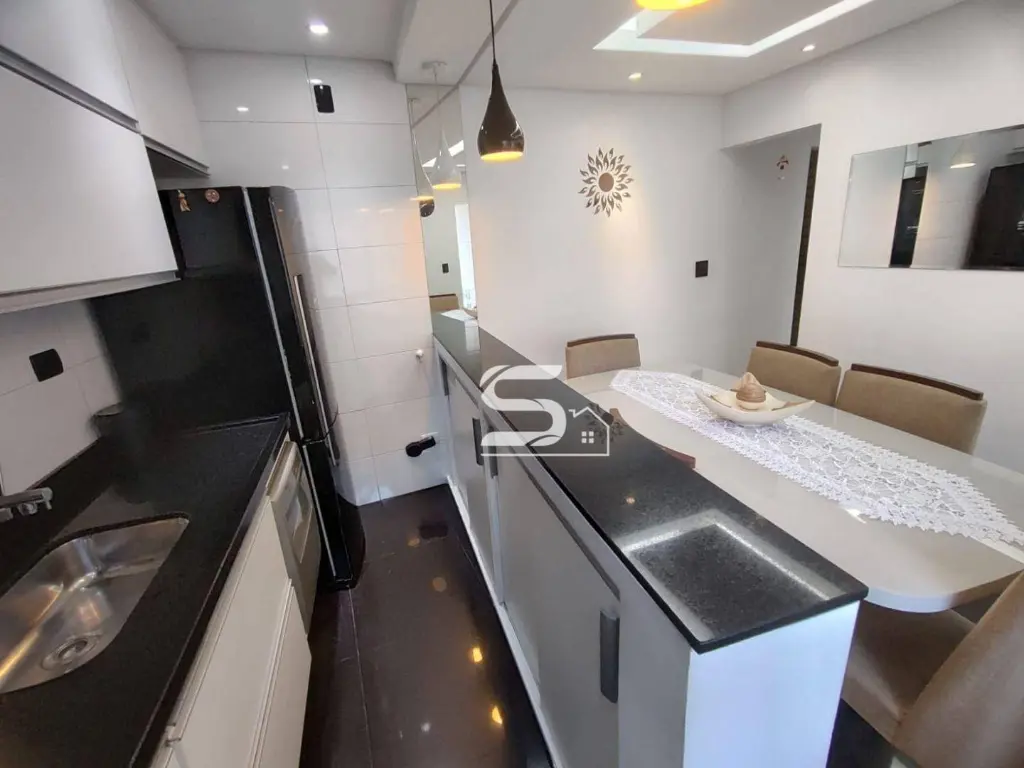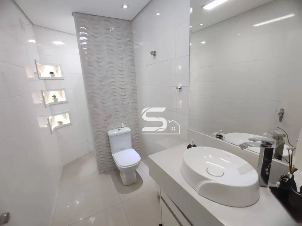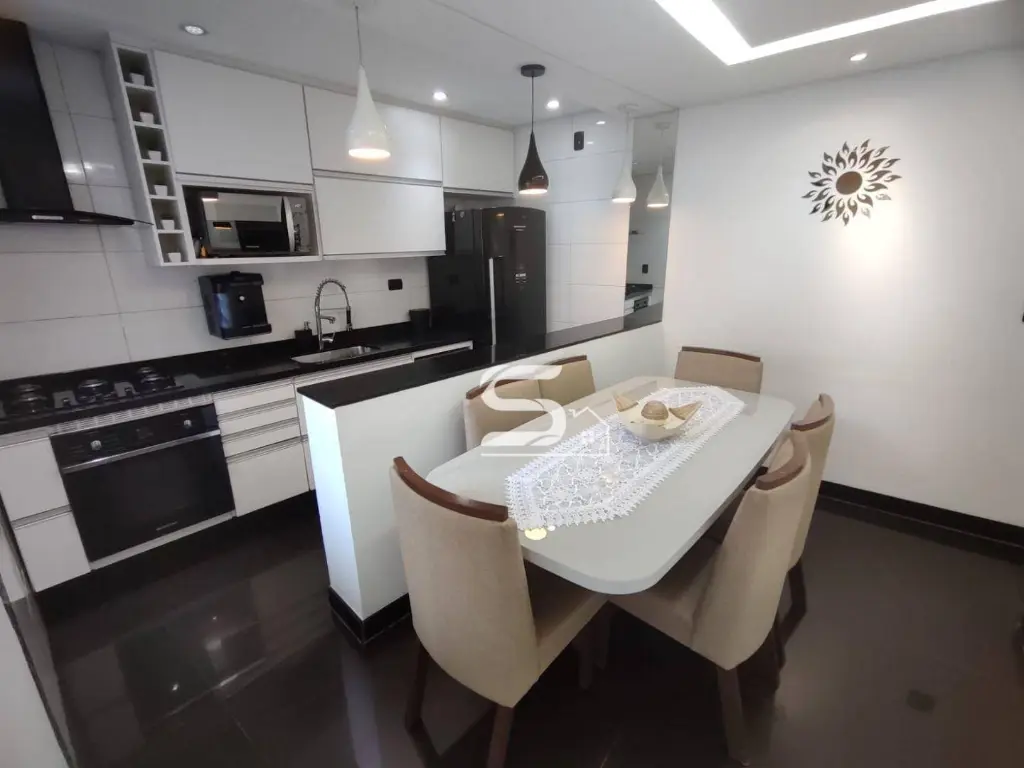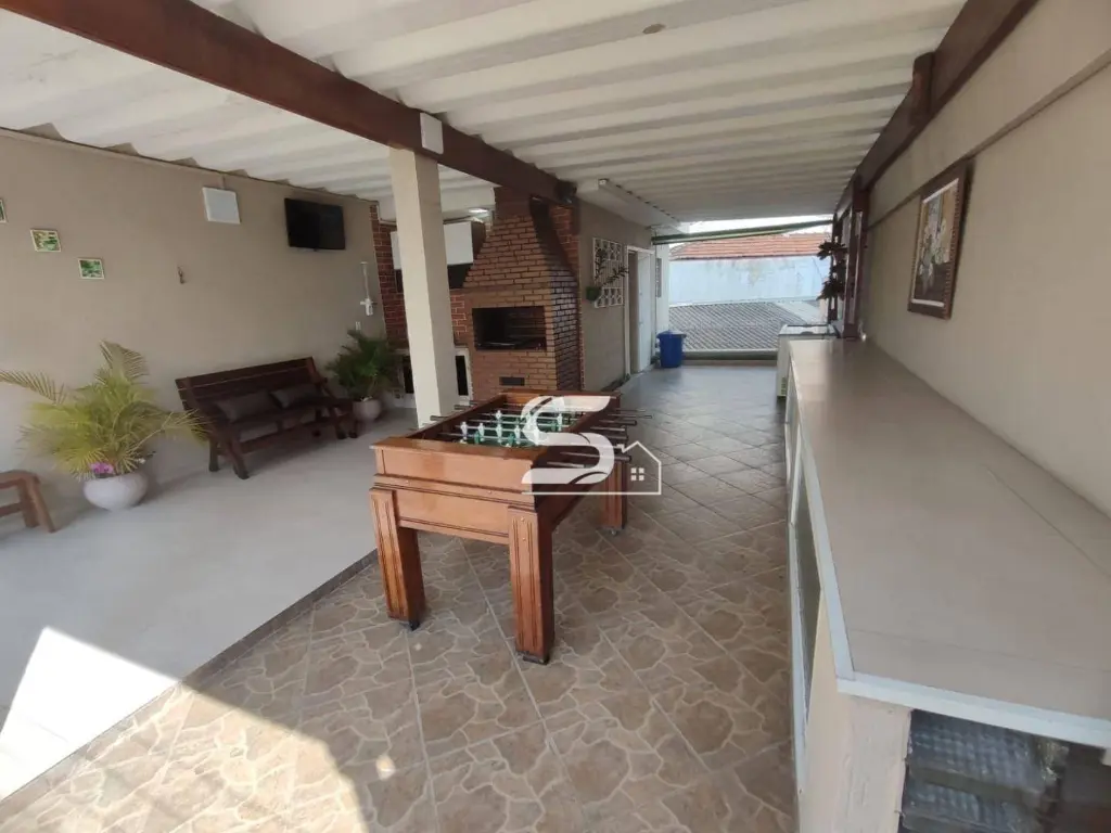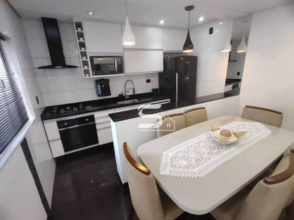 02 dormitórios com closet e ar condicionado, sala de estar, sala de jantar, lindo banheiro todo reformado, cozinha toda planejada com fogão cooktop e forno embutido, lavanderia na parte coberta e uma excelente área de churrasqueira, toda coberta sobre toda a casa e 2 vagas de garagem.