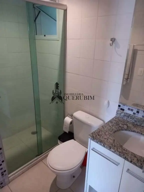 3 banheiros, todos com box de vidro e gabinetes modernos