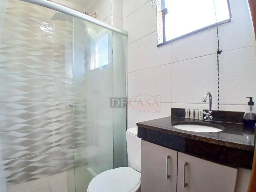 - Banheiro social com box de vidro, planejados e ventilação natural