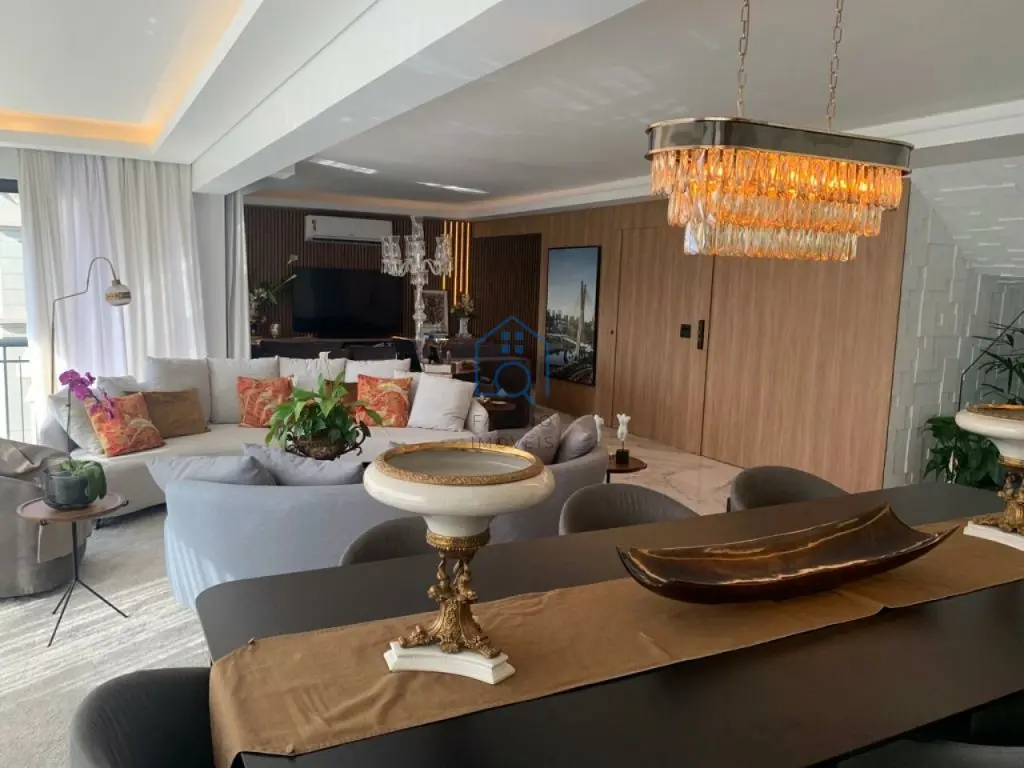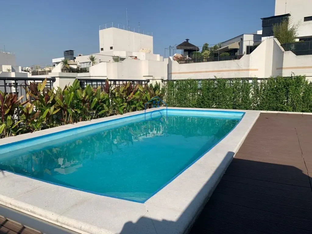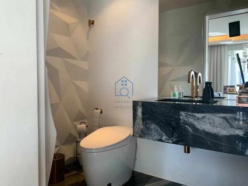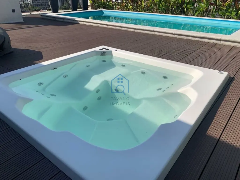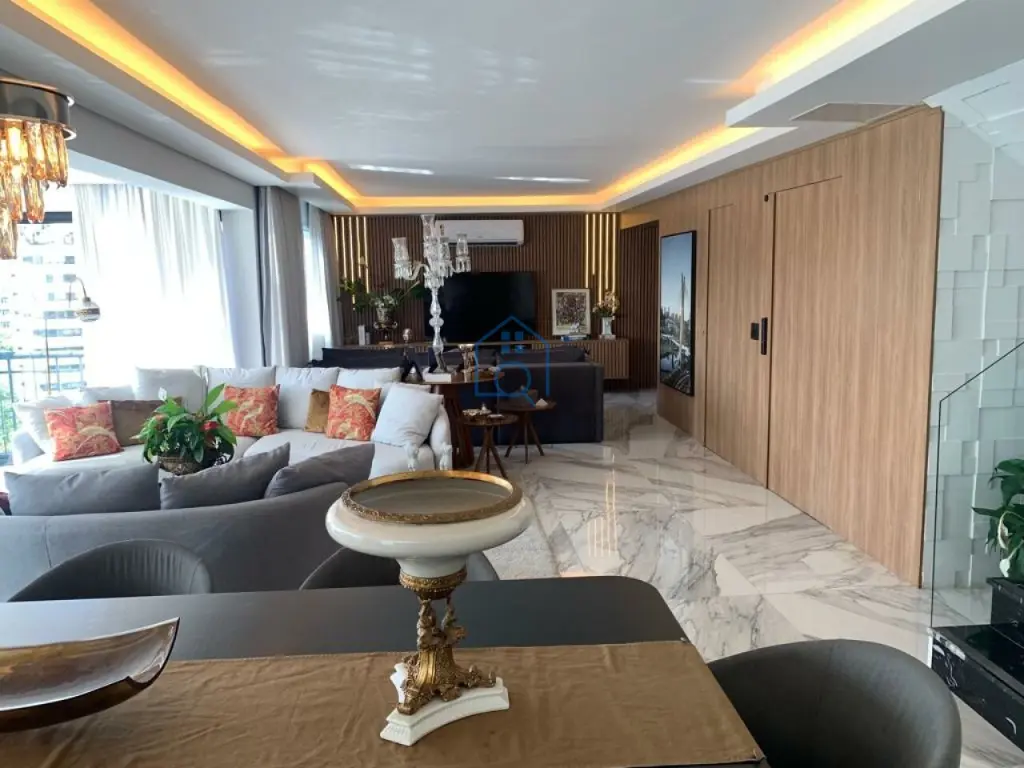 Ampla cobertura duplex 405m² mobiliada, 3 suítes, lavabo, persianas automatizadas, janelas anti ruído, banheiros com sanitário inteligente, ar condicionado em todos os ambientes, finamente decorado com os melhores materiais de acabamento, área gourmet com piscina e jacuzzi, bom gosto em todos os detalhes.