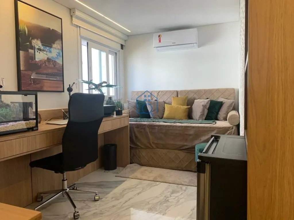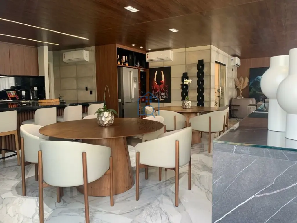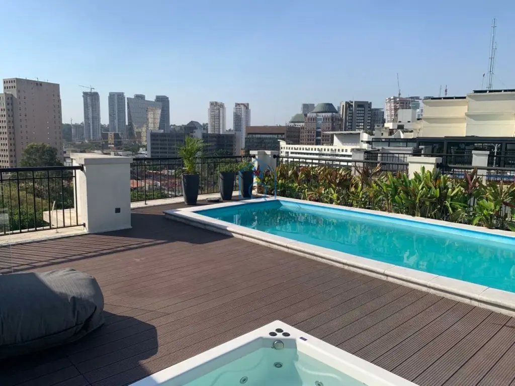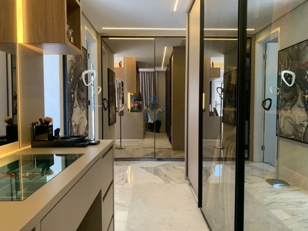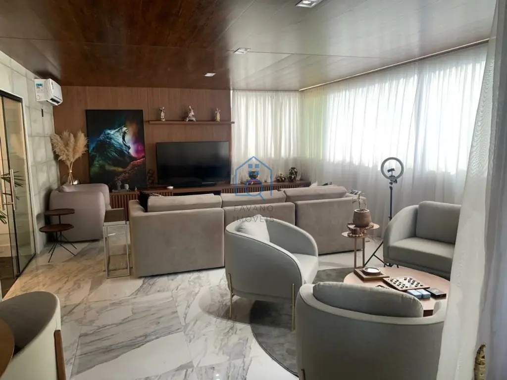 Ampla cobertura duplex 405m² mobiliada, 3 suítes, lavabo, persianas automatizadas, janelas anti ruído, banheiros com sanitário inteligente, ar condicionado em todos os ambientes, finamente decorado com os melhores materiais de acabamento, área gourmet com piscina e jacuzzi, bom gosto em todos os detalhes.