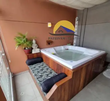 Terraço Privativo: O grande destaque! Relaxe na sua Jacuzzi exclusiva ou faça aquele churrasco especial na sua churrasqueira a carvão.