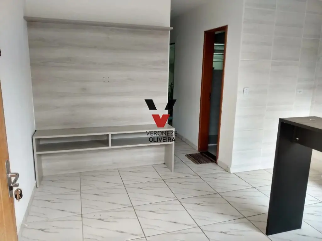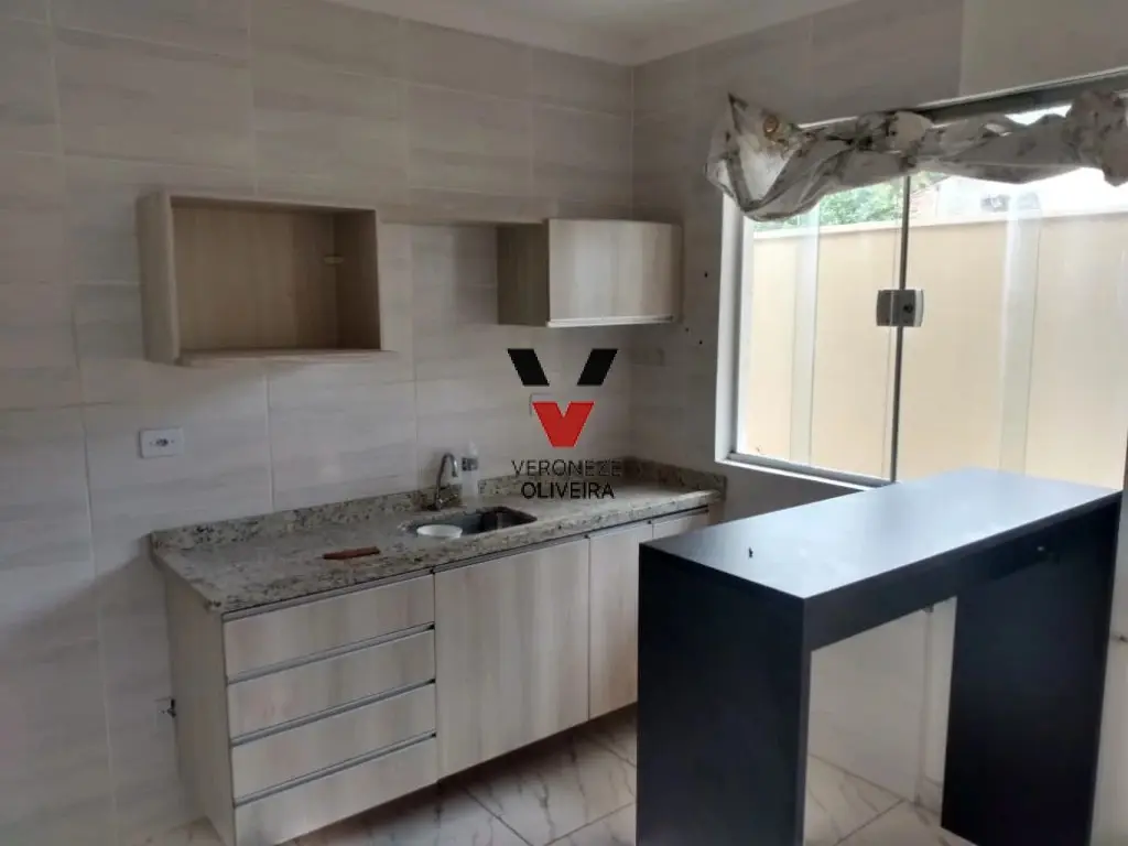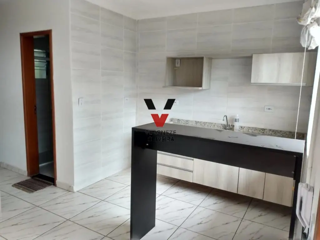 Sobrado com 01 dormitório, sala ampla com 02 ambientes, 01 banheiro, cozinha e área de serviço.