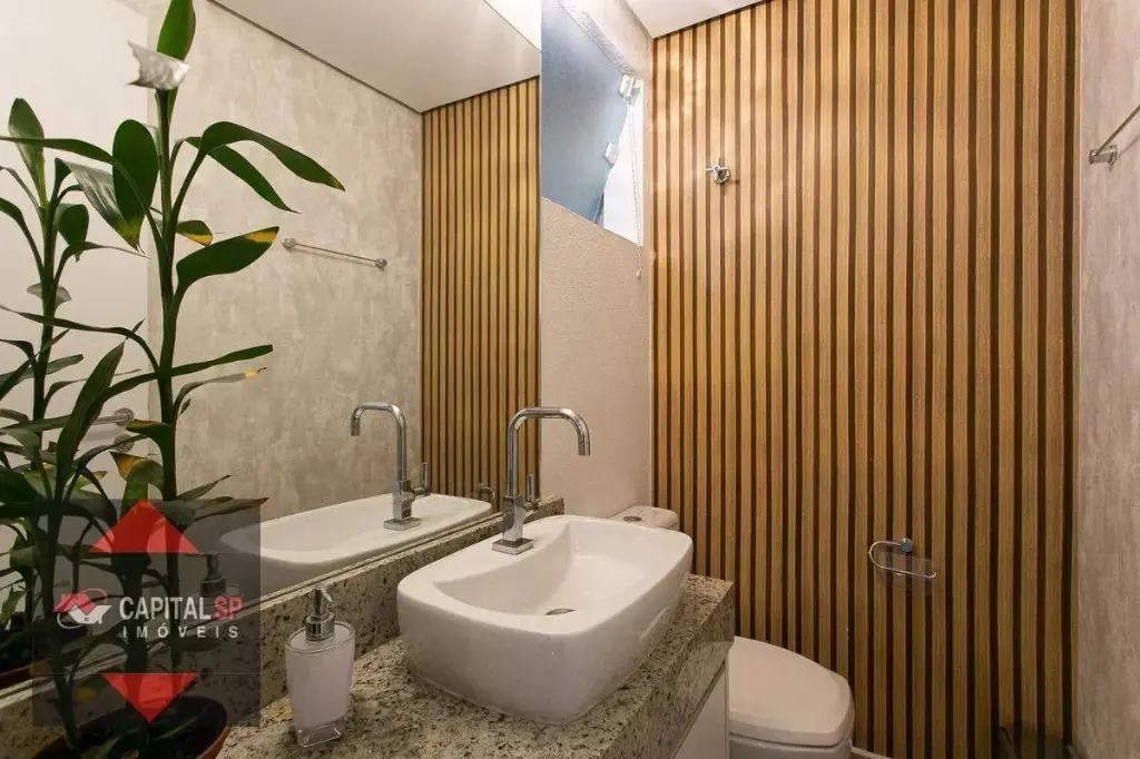 Lavabo discreto e funcional no térreo