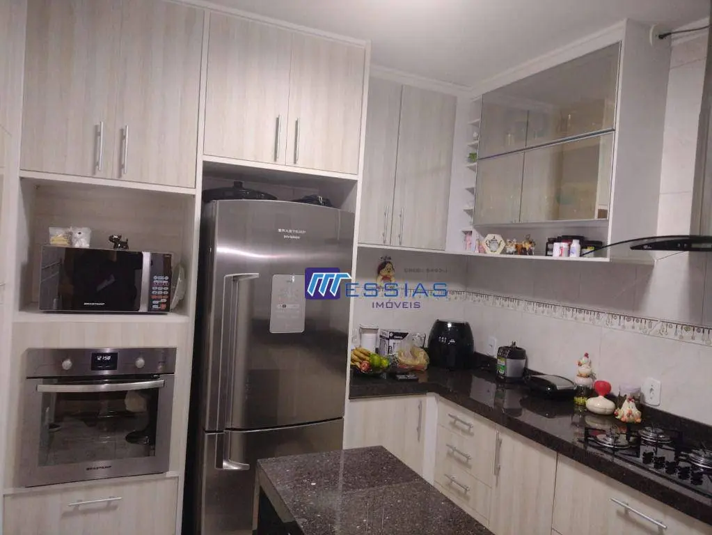 Sobrado com porteira fechada em Condomínio Fechado de 6 casas, com 130 m² de área construída com finíssimo bom gosto no acabamento e decoração, distribuídos em 3 amplos dormitórios, sendo 1 maravilhosa suíte com sacada, armários embutidos, ar condicionado, piso em porcelanato, banheiro social, sala 2 ambientes, com teto trabalhado em gesso com lâmpadas embutidas, ar condicionado, lavabo, espaçosa cozinha com armários planejados, fogão cooktop, coifa e isolamento até o teto, lavanderia com cobertura retrátil, maravilhoso espaço gourmet com churrasqueira, pia e fogão a lenha, caixa d´água com 1.500 lts e aquecimento a gás, 2 vagas de garagem com portão independente, sistema de segurança com câmeras e alarmes com portão automatizado. Aceita Financiamento.