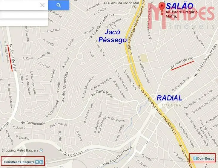 3,5km do metrô Itaquera