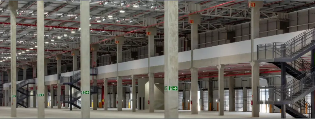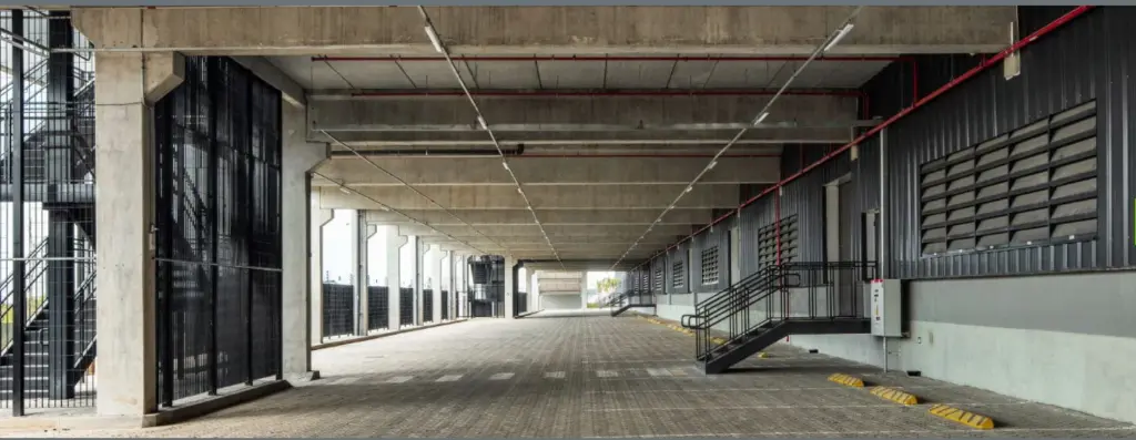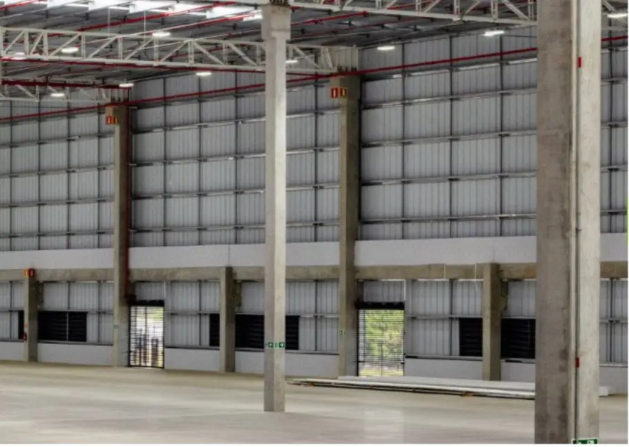 2 docas de carga por unidade + expansão da doca, Espaçamento entre colunas: 16,20m x 23,50m.