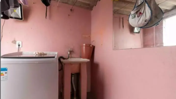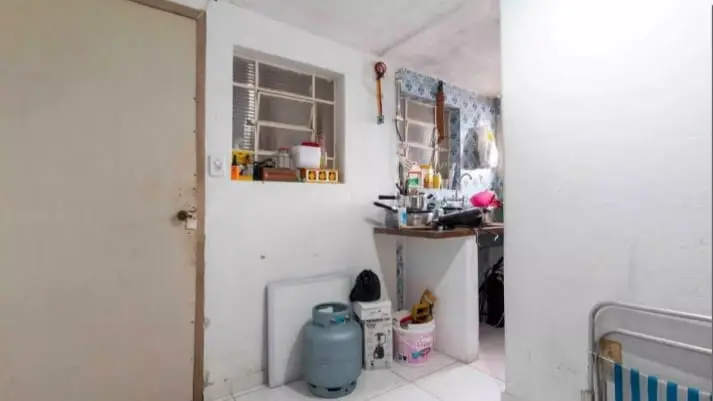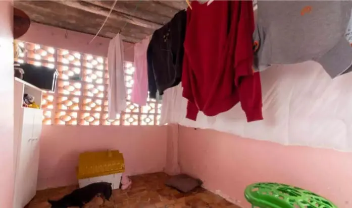 Casa de baixo: 1 dormitório, sala e cozinha integrados, banheiro e lavanderia.