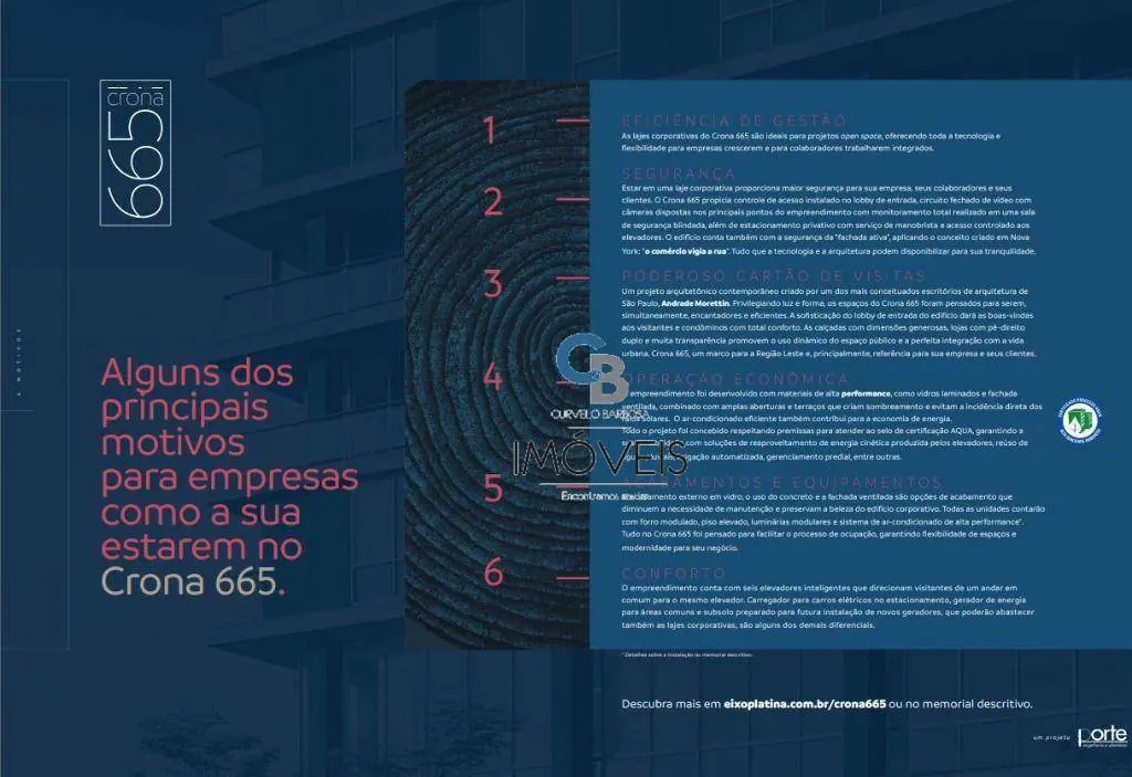 Chegou a hora de elevar o nível do seu negócio! Alugue uma unidade de alto padrão no Crona 665, o edifício mais moderno e tecnológico da Zona Leste de São Paulo.