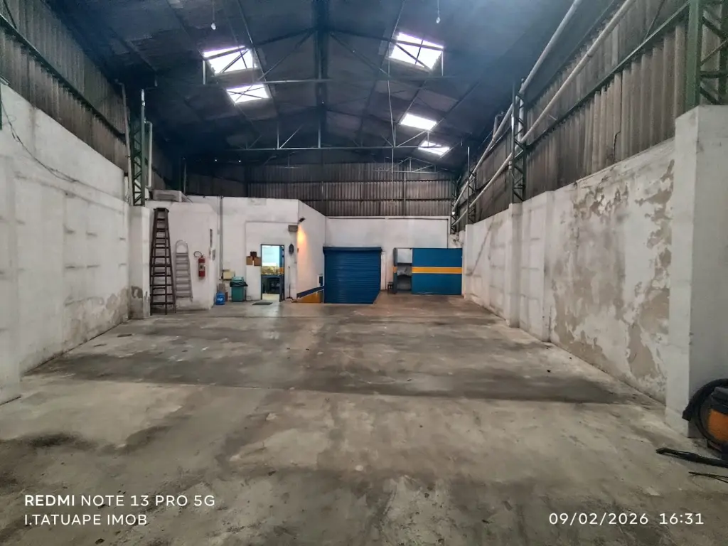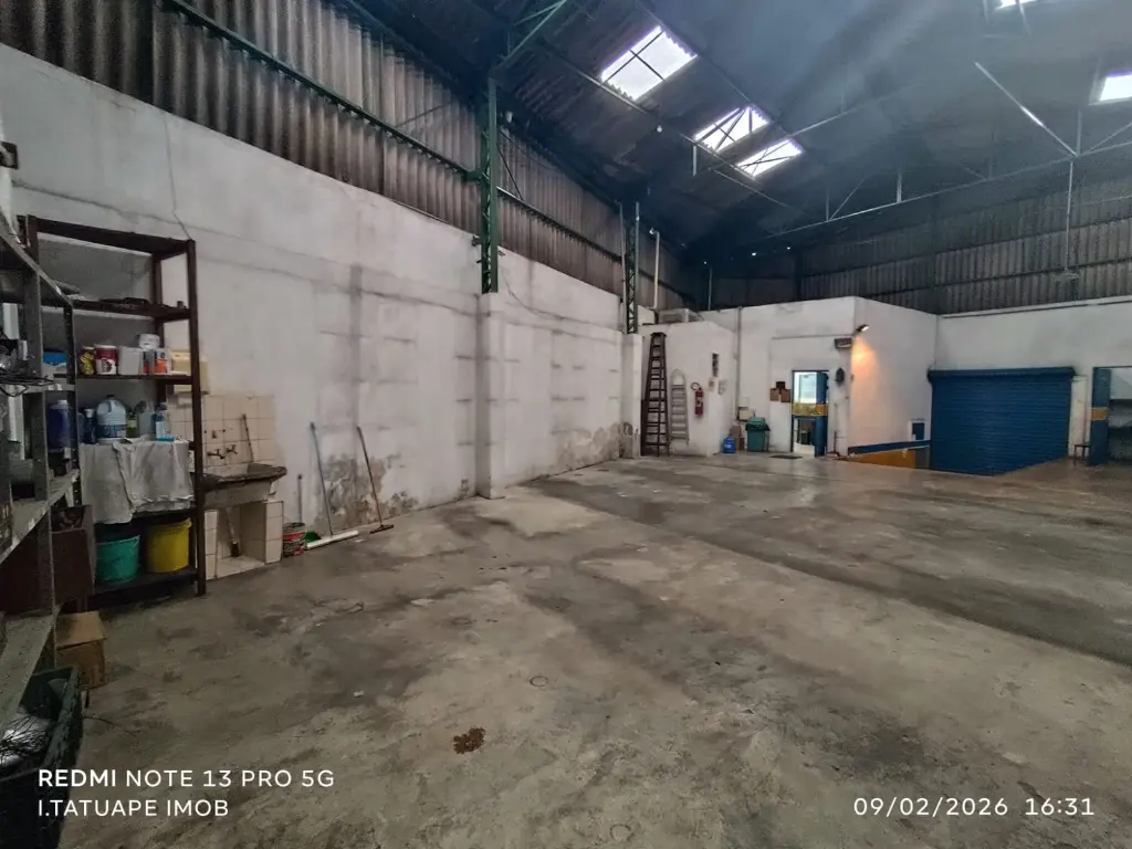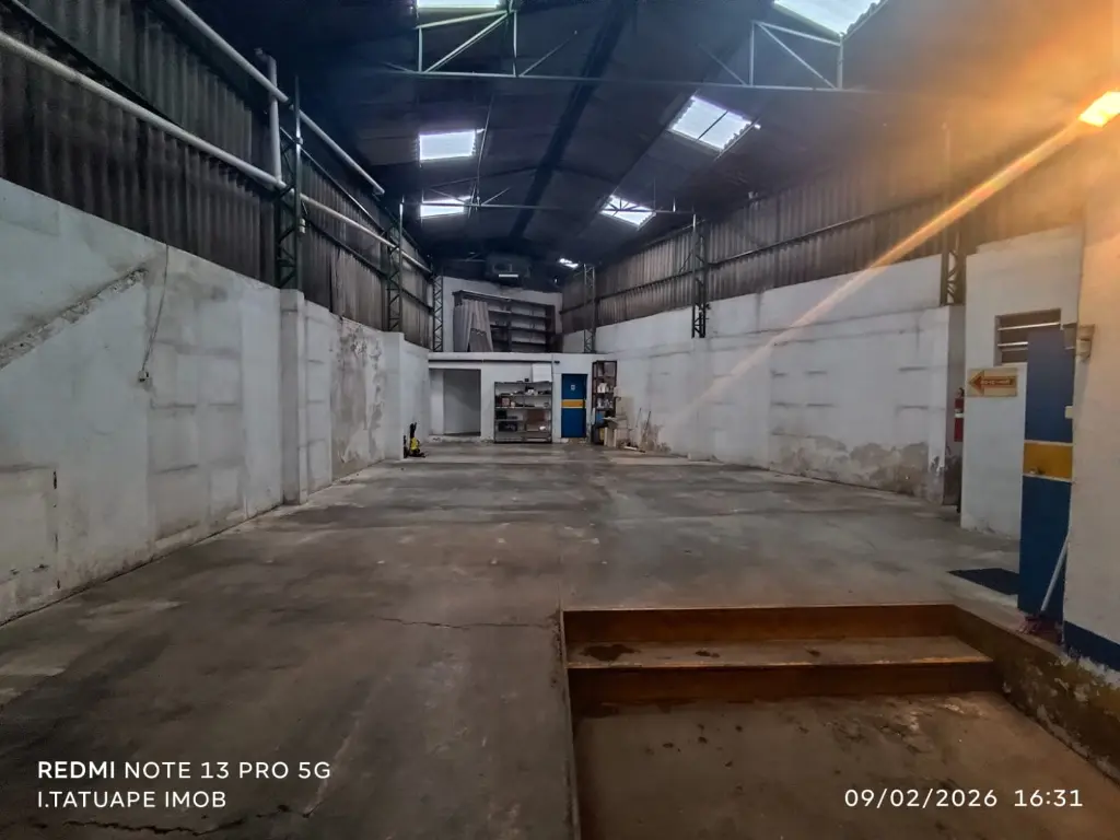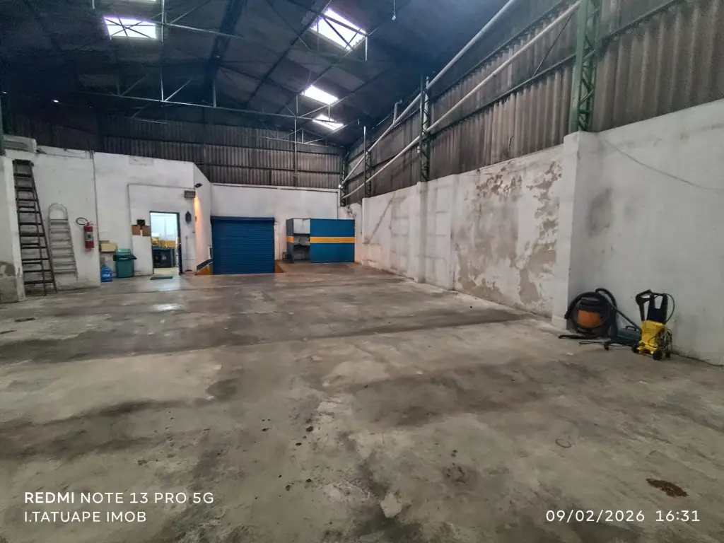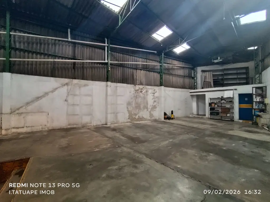 O pé direito de 8 metros proporciona excelente aproveitamento vertical, ideal para armazenamento, instalação de estruturas ou otimização do espaço.