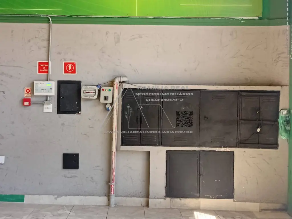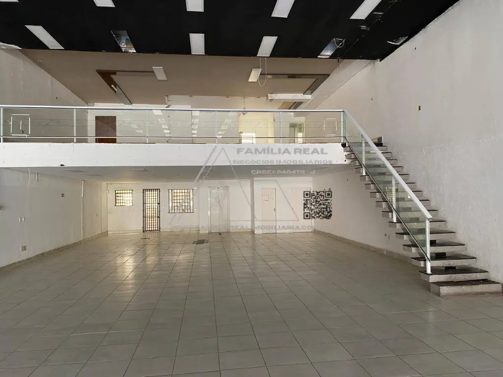 Um prédio com 800 M² de área construída, sendo térreo com 350 M² de vão livre, um mezanino com 100 M² e a sobreloja com 350 M², divididos com drywall, compondo, 6 salas amplas, wc masculino, feminino e (PcD). Possui elevador, escada e sistema de incêndio com 2 vagas na entrada.
